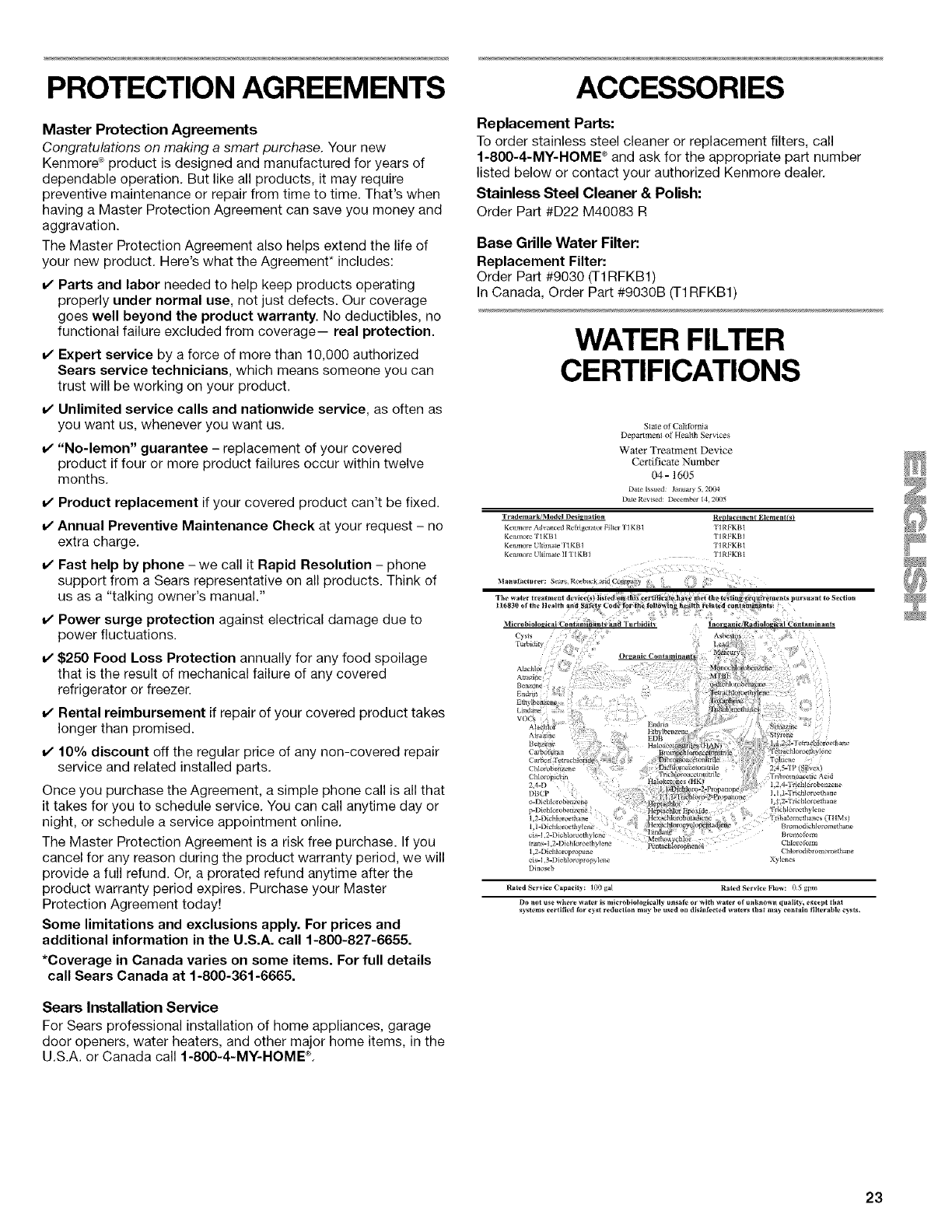 WATER FILTER CERTIFICATIONS ............................................ 23