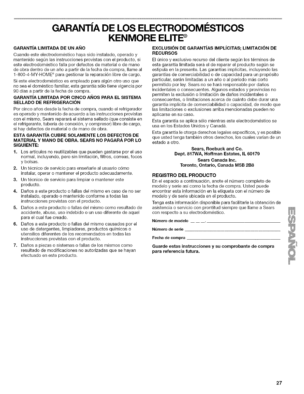 Kenmore Elite 10658162704 User Manual SIDE BY REFRIGERATOR Manuals And Guides L0806048