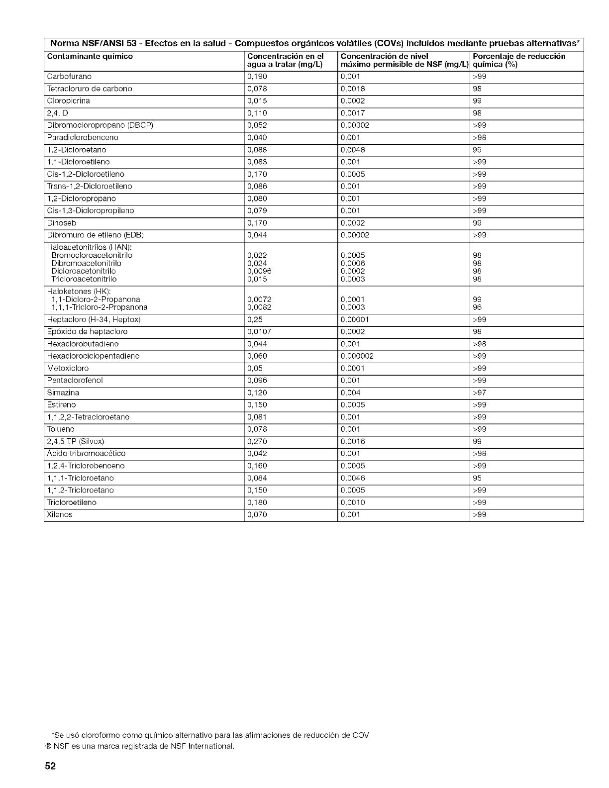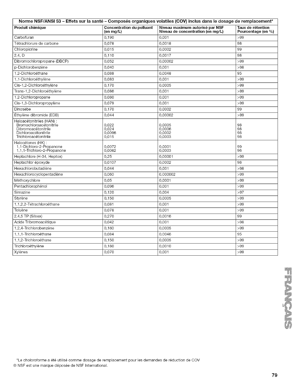 Norme NSF/ANSI 53 - Effets sur la sant_ - Compos_s organiques volatiles (COV) inclus dans le dosage de remplacement*