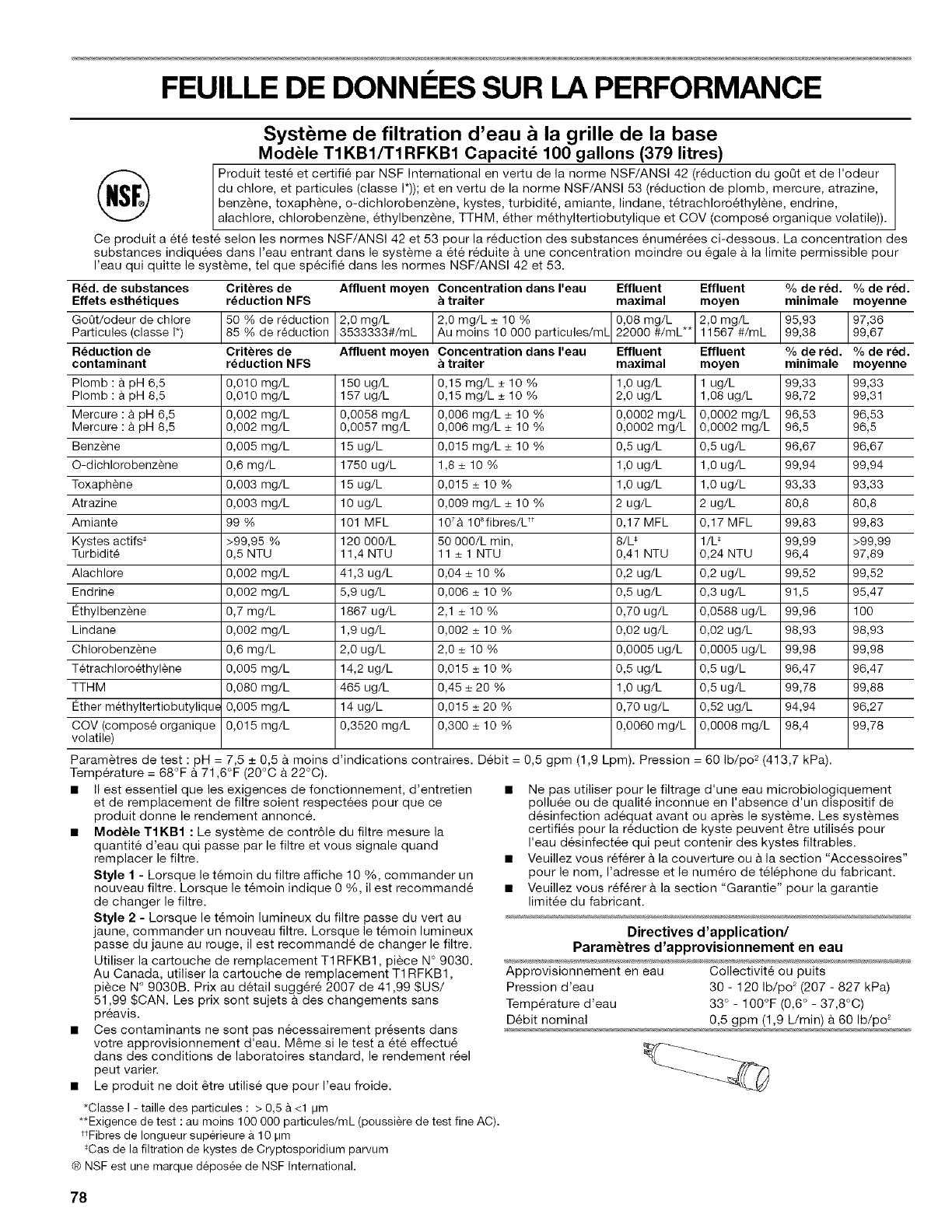Produit chimique Concentration du polluant Niveau maximum autoris_ par NSF Taux de r_tention