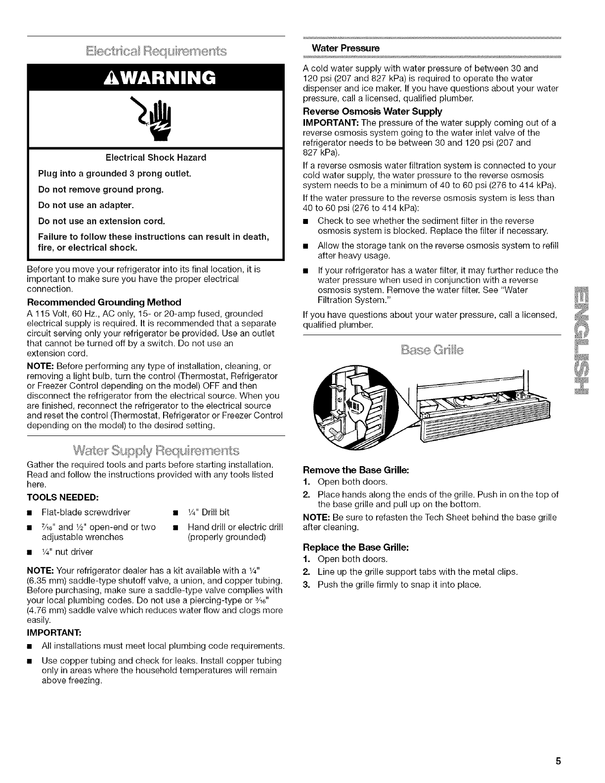 KENMORE ELITE Side by Side Refrigerator Manual L0806048 KENMORE ELITE Side by Side Refrigerator Owner's Manual, KENMORE ELITE Side by Side Refrigerator installation guides
