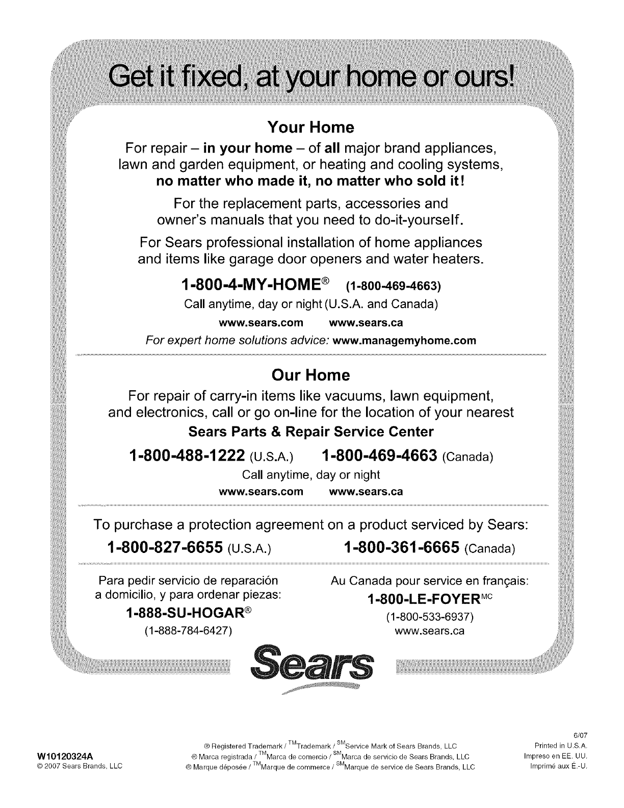 Sears Roebuck and Co., Hoffman Estates, IL 60179 U.S.A. www.sears.com