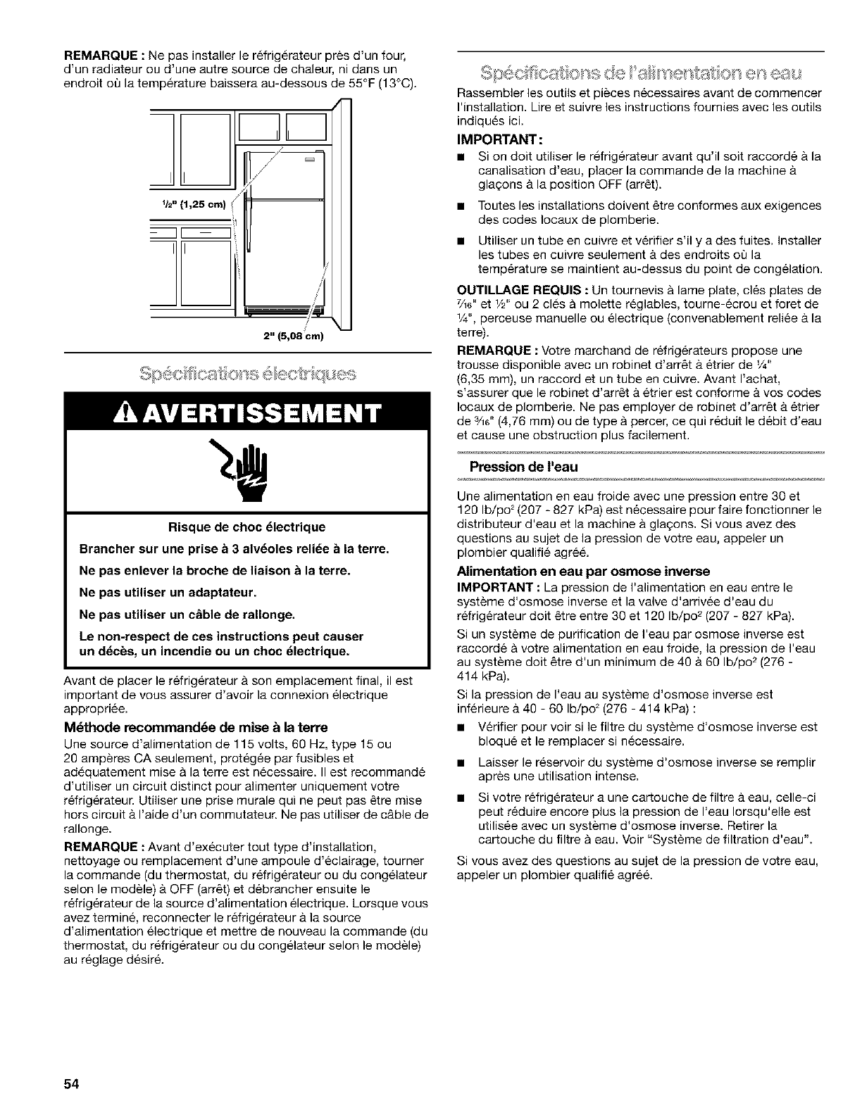 Pression d'eau 30 - 120 Ib/po =(207 - 827 kPa)