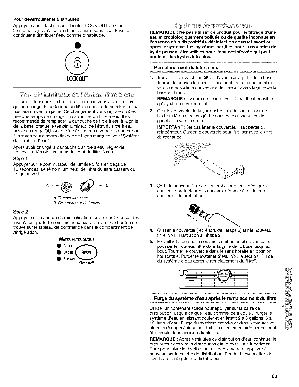 Lorsque 100 % de la vie utile du filtre est 6couI6e, le t6moin