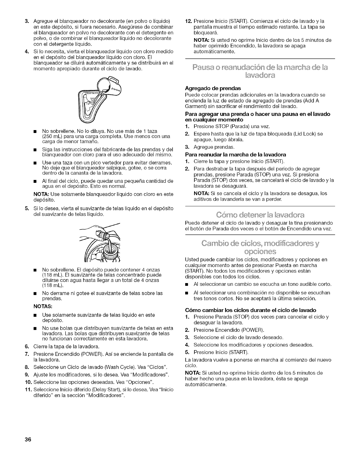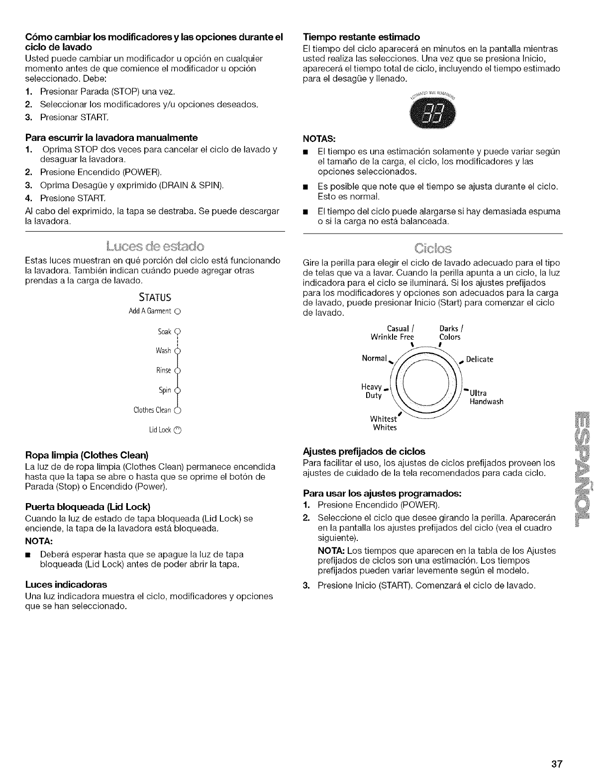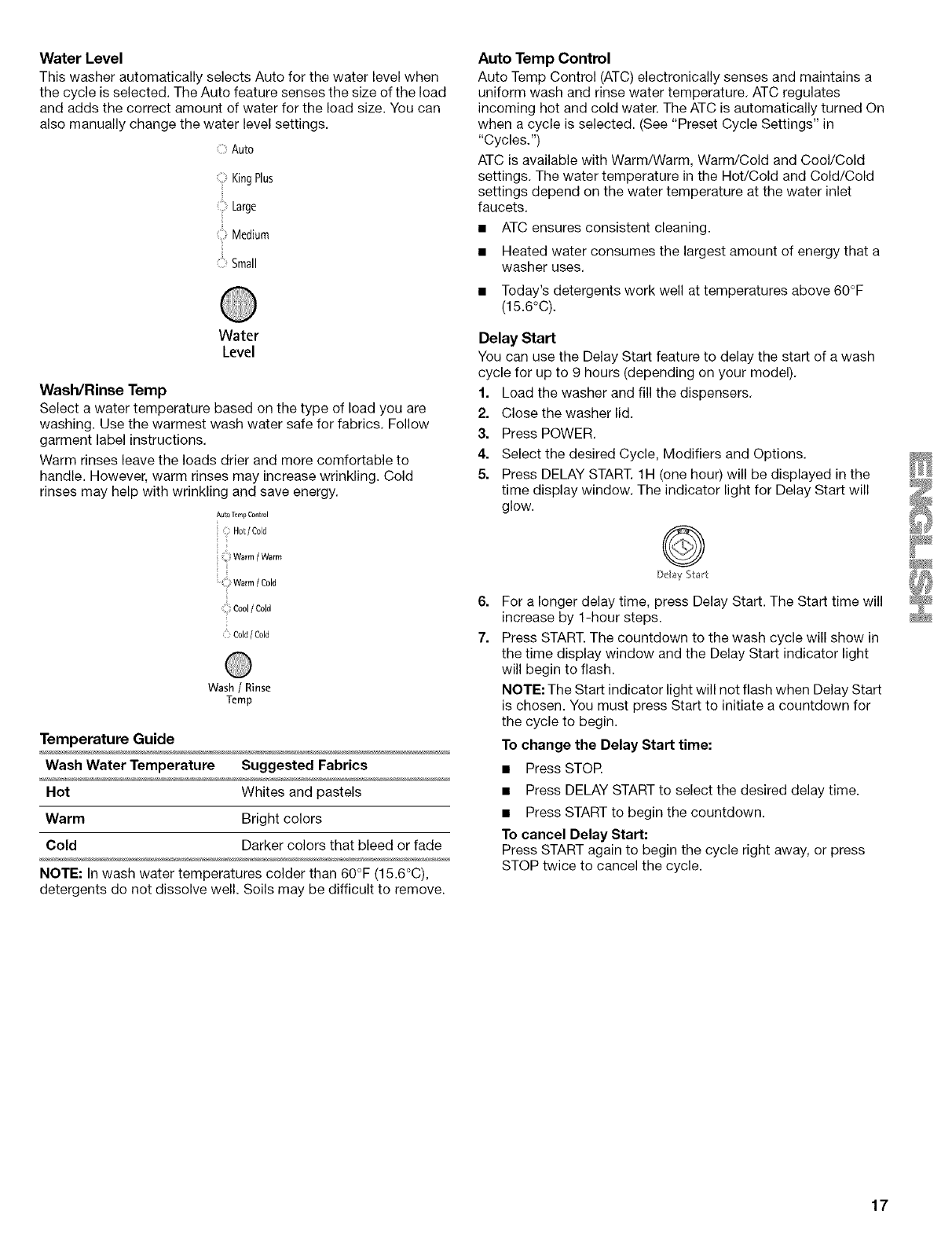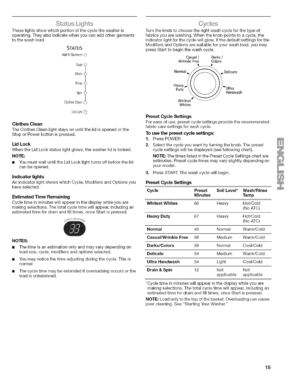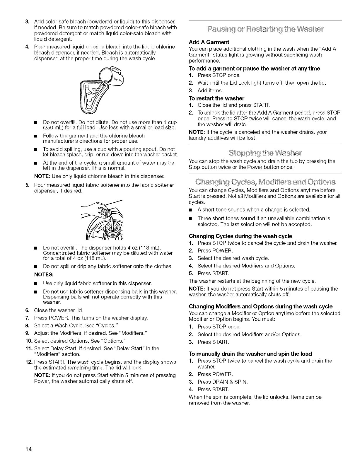 Pausing or Restarting the Washer ............................................ 14