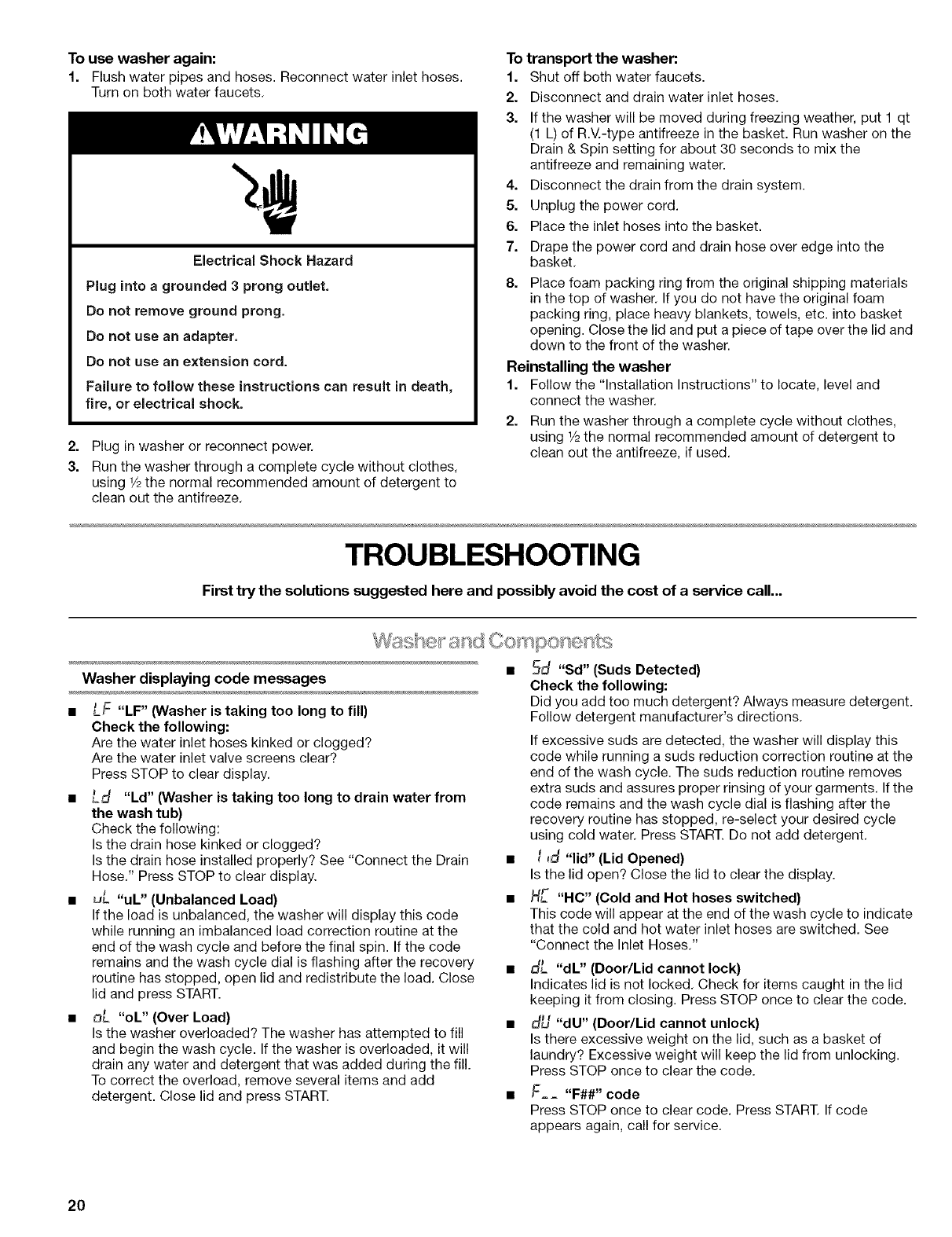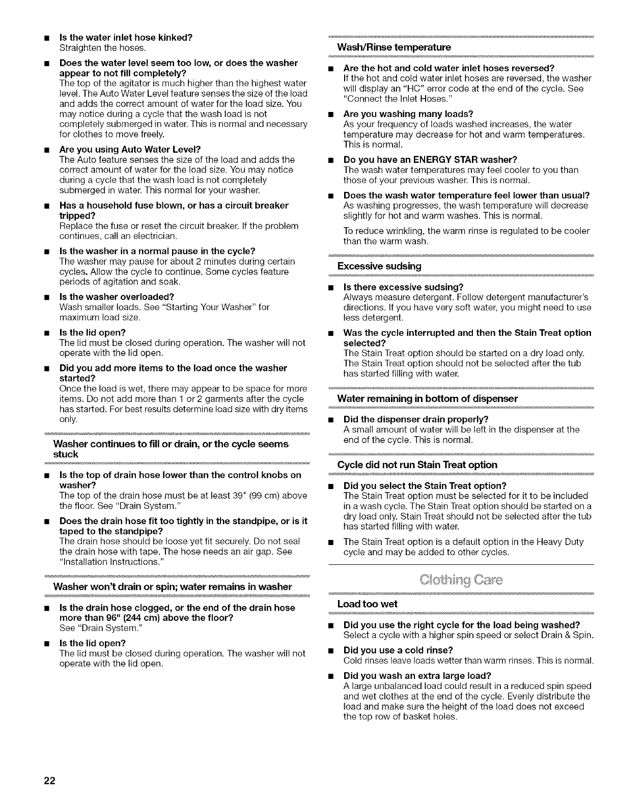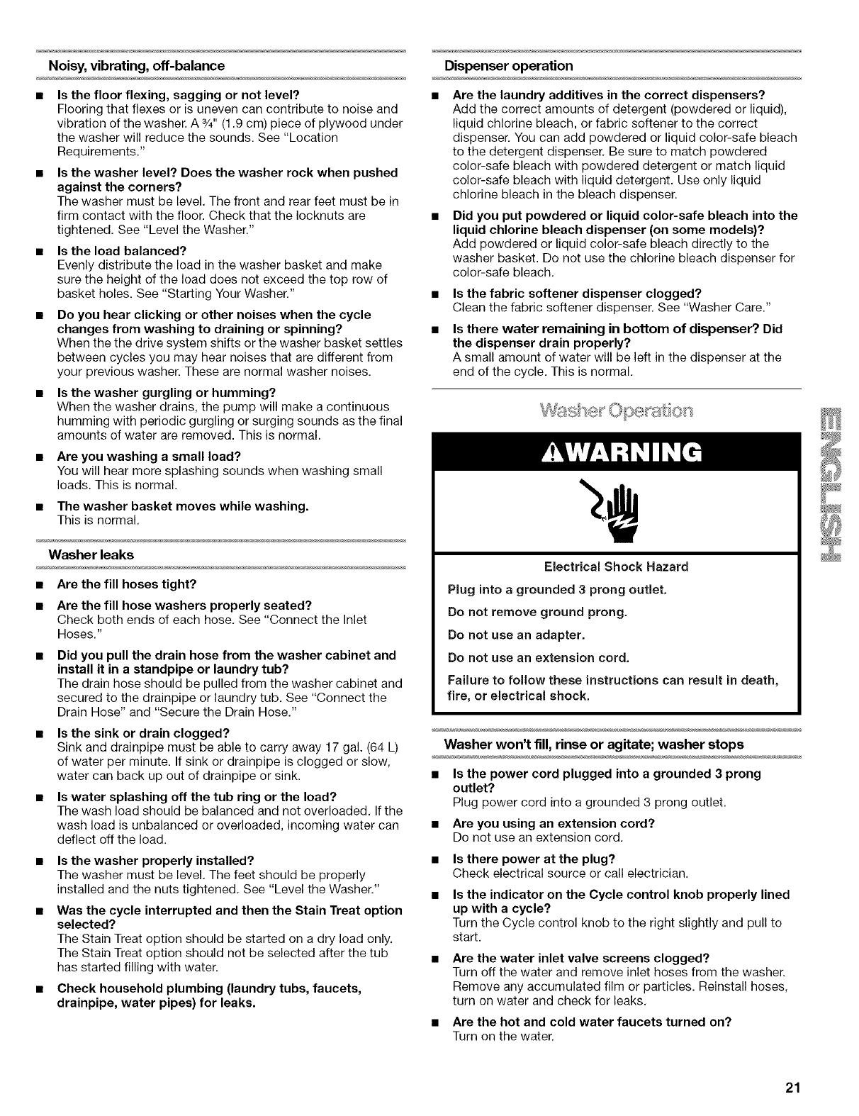 WASHER CARE ........................................................................... 19