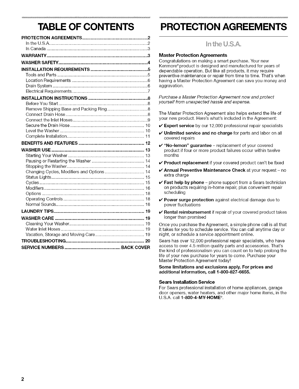 SERVICE NUMBERS ............................................... BACK COVER
