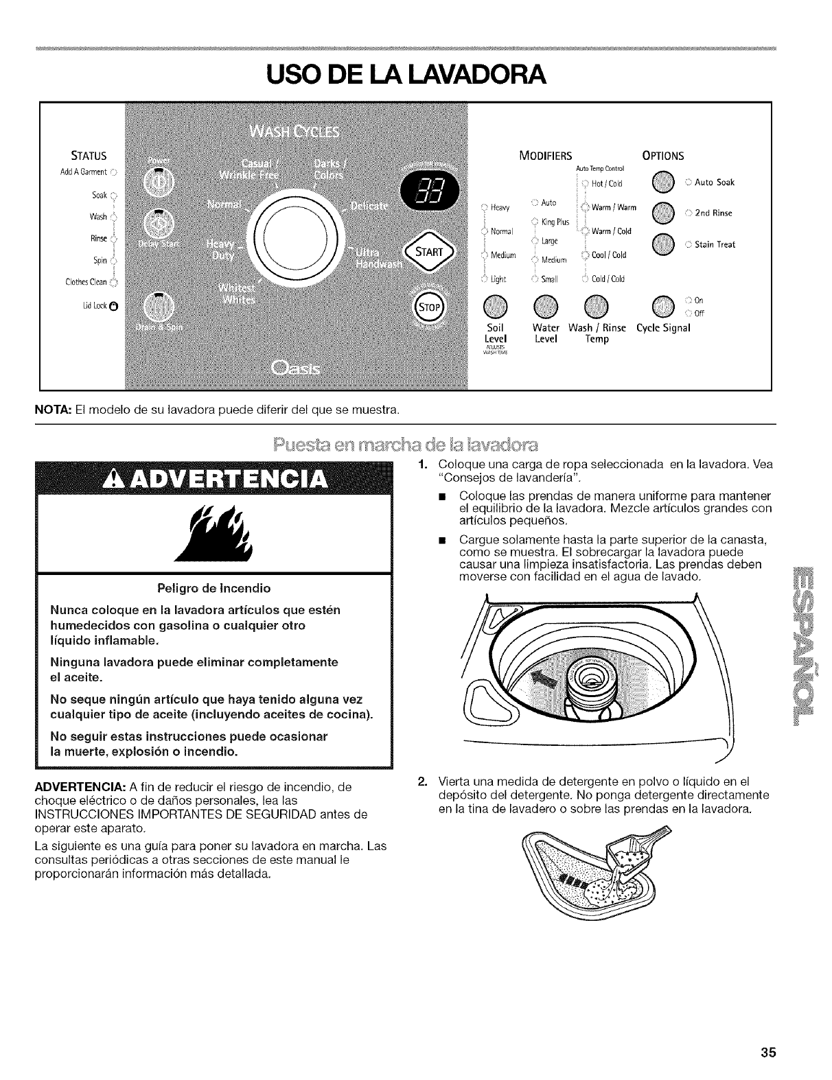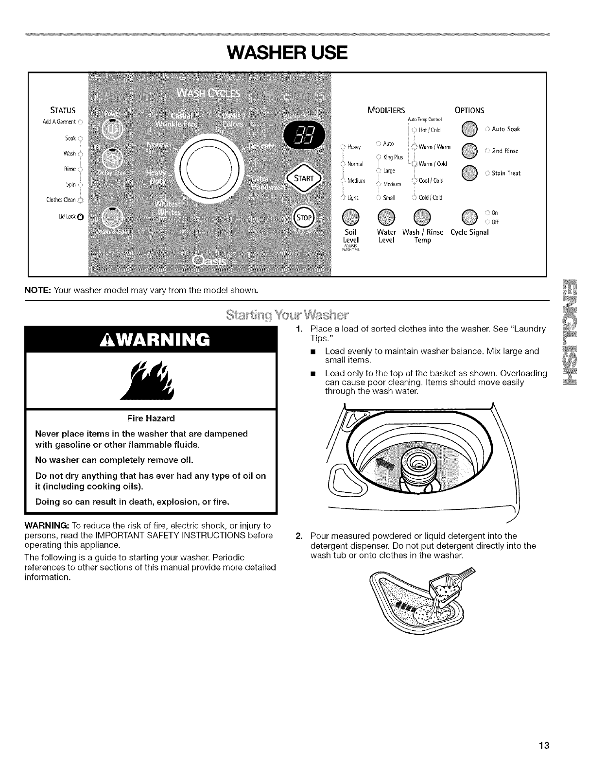 WASHER USE .............................................................................. 13