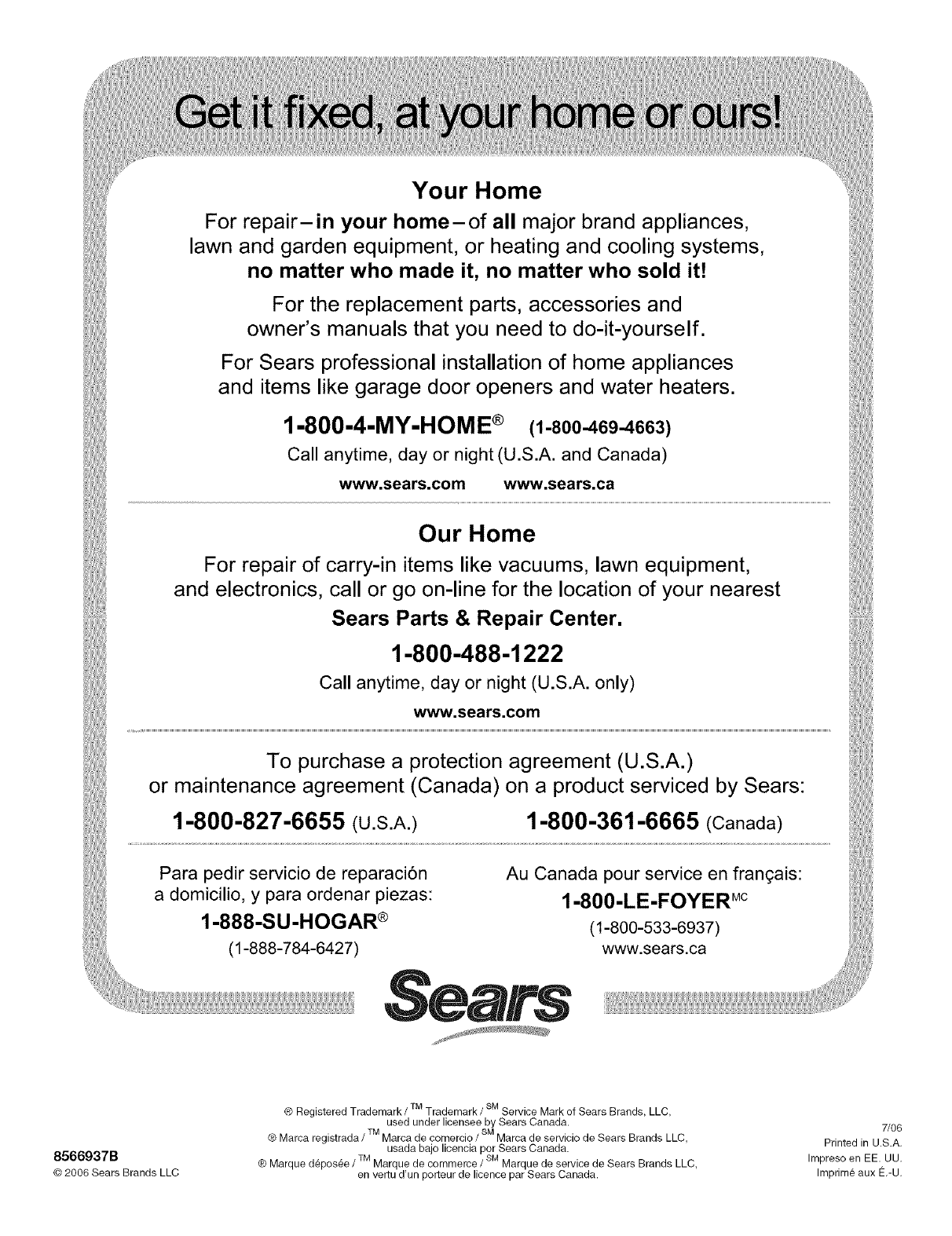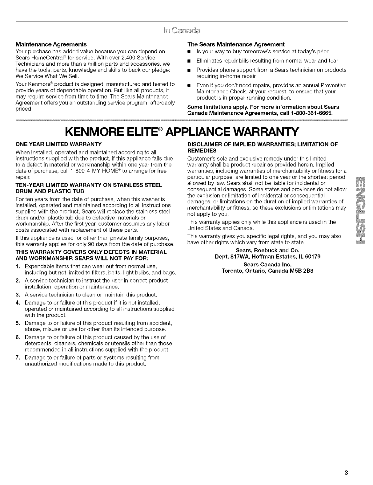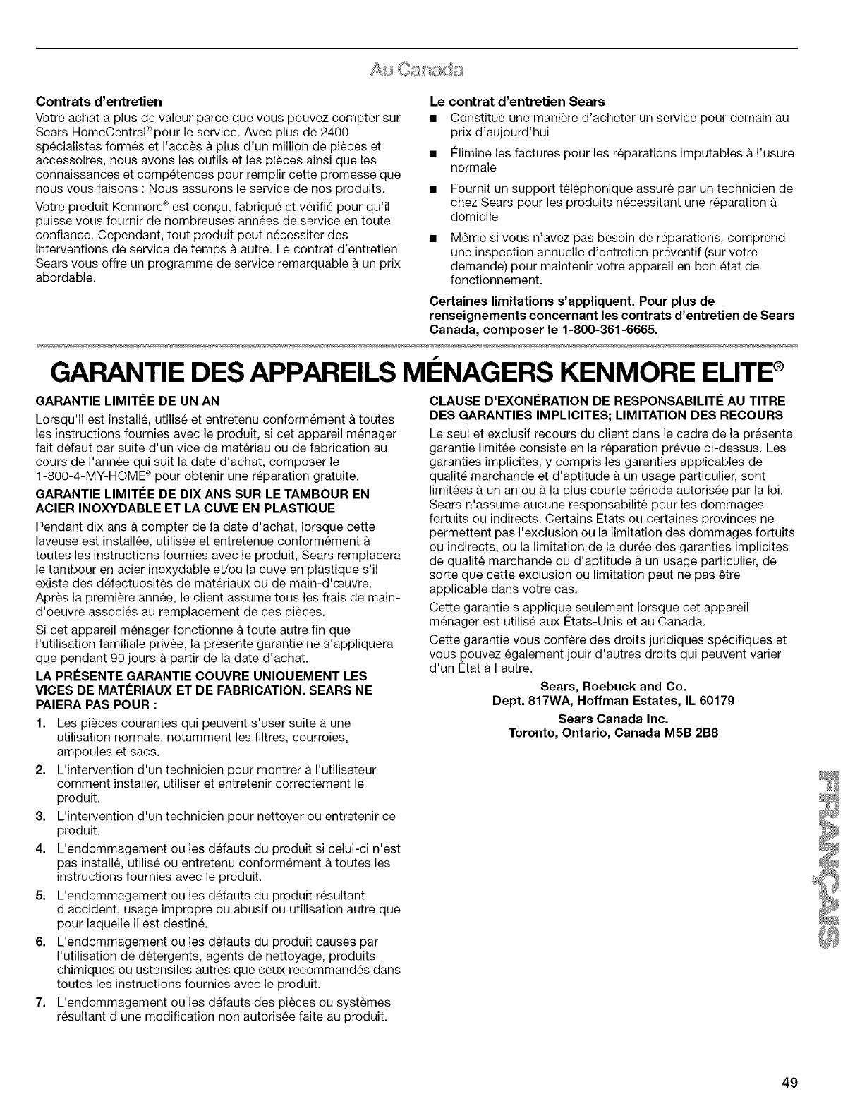 Sears Roebuck and Co., Hoffman Estates, IL 60179 U.S.A. www.sears.com