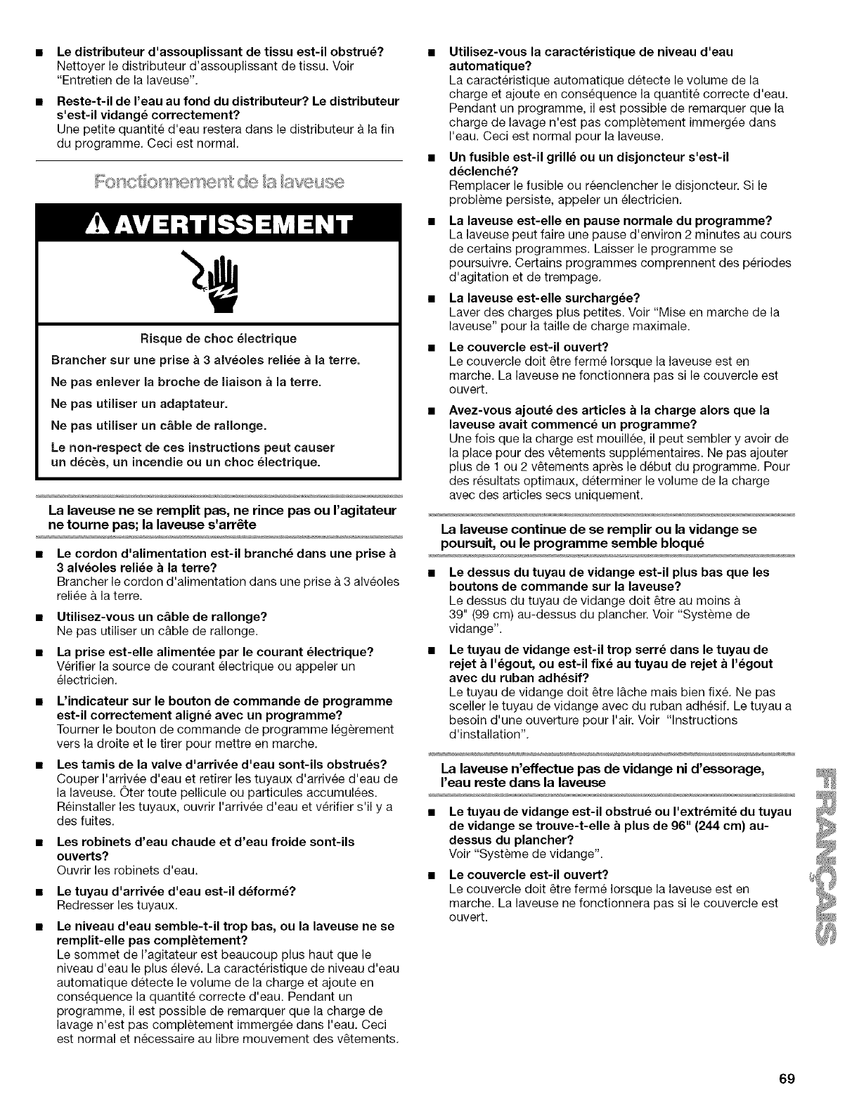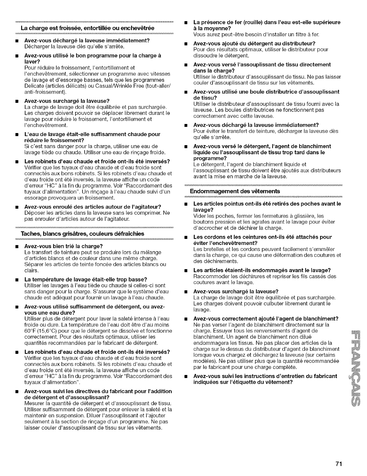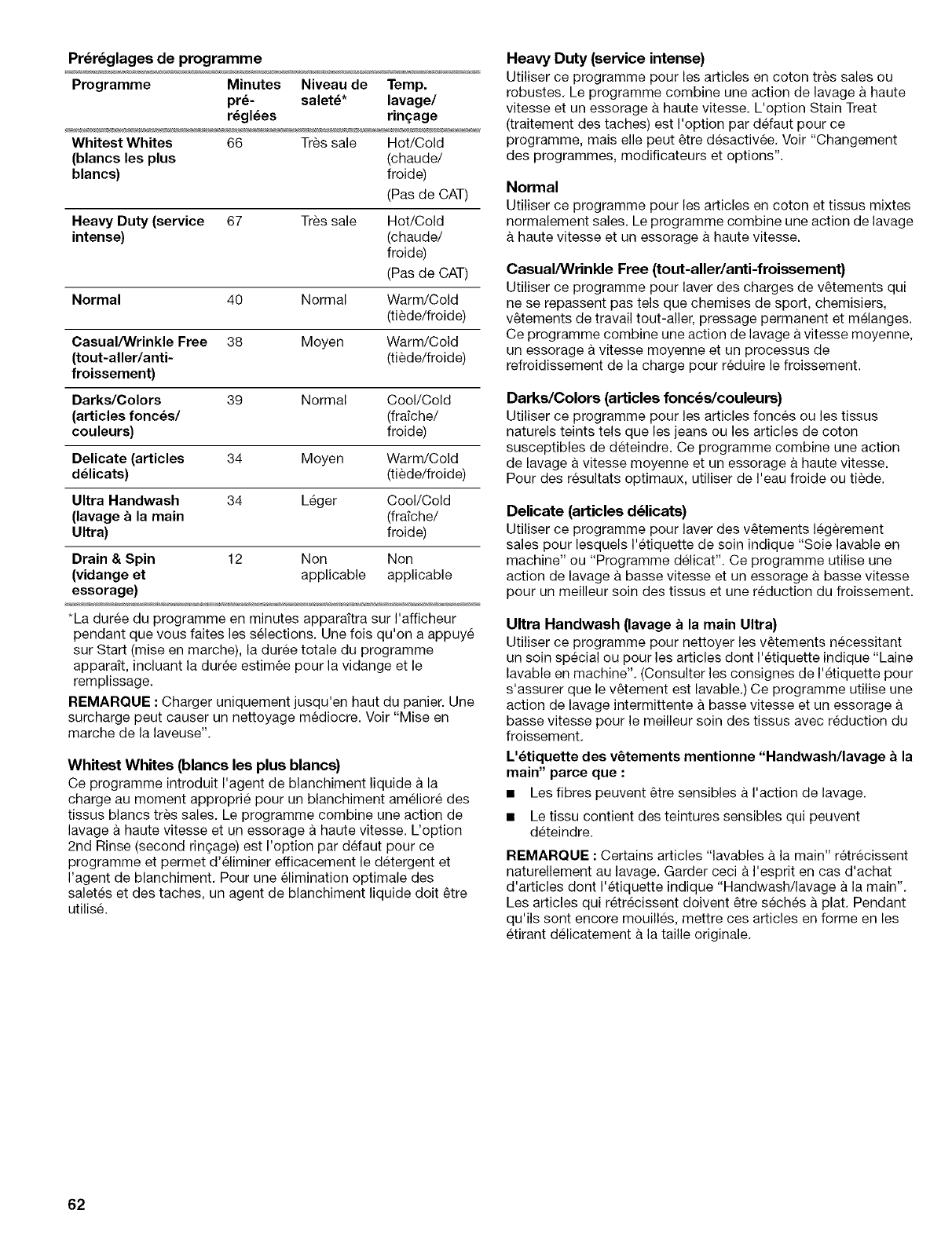 Iorsque vous chargez et dechargez la laveuse (sur certains
