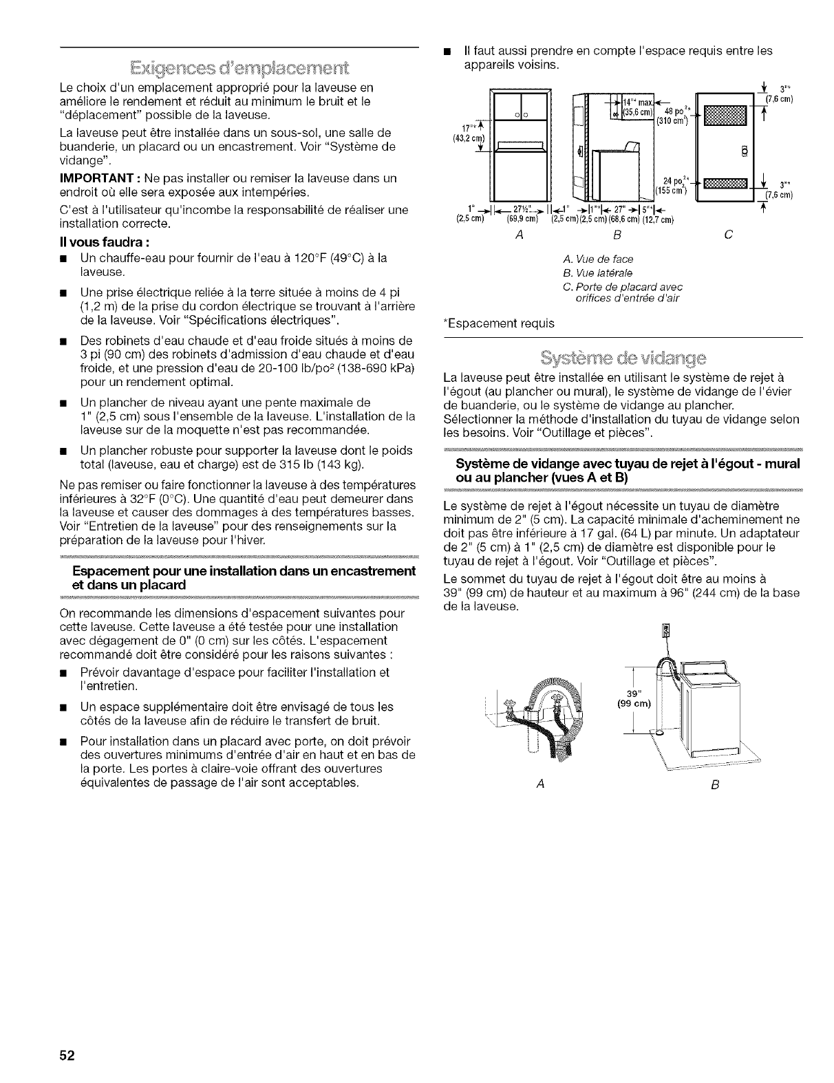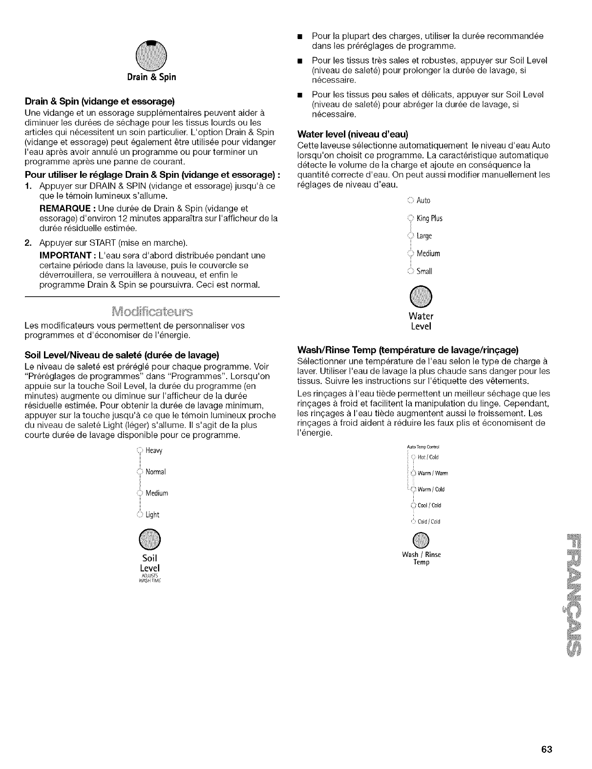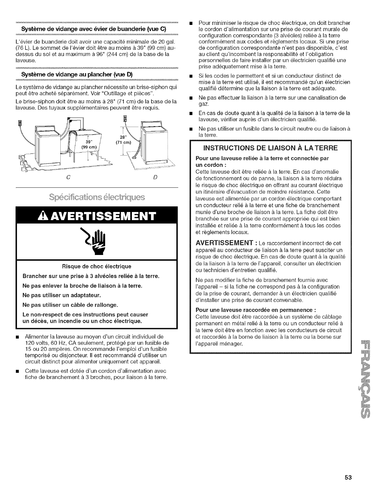 Iorsque vous chargez et dechargez la laveuse (sur certains