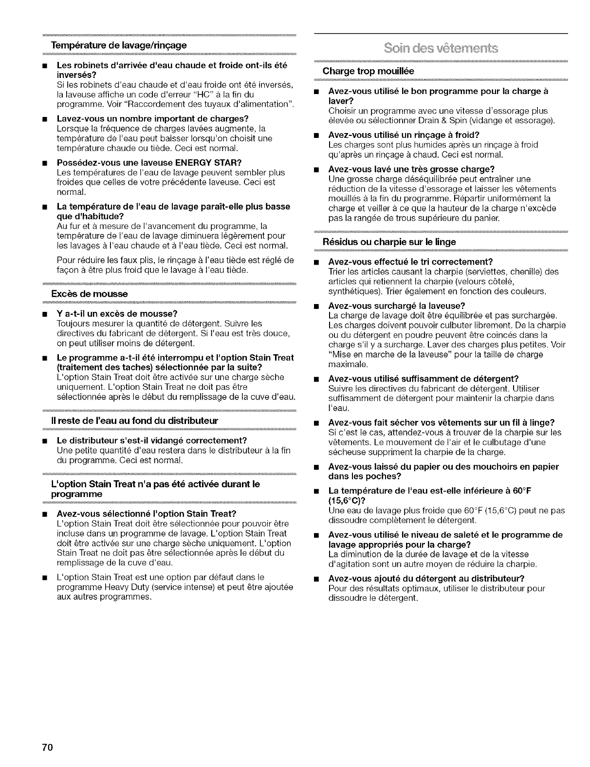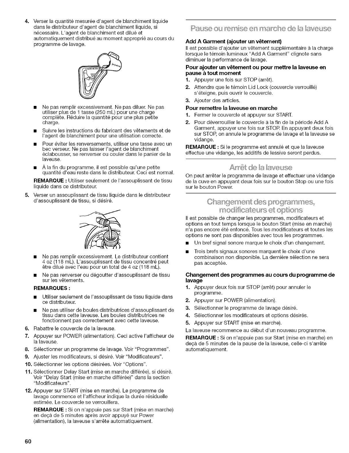 Utiliser le distributeur d'assouplissant de tissu. Ne pas laisser
