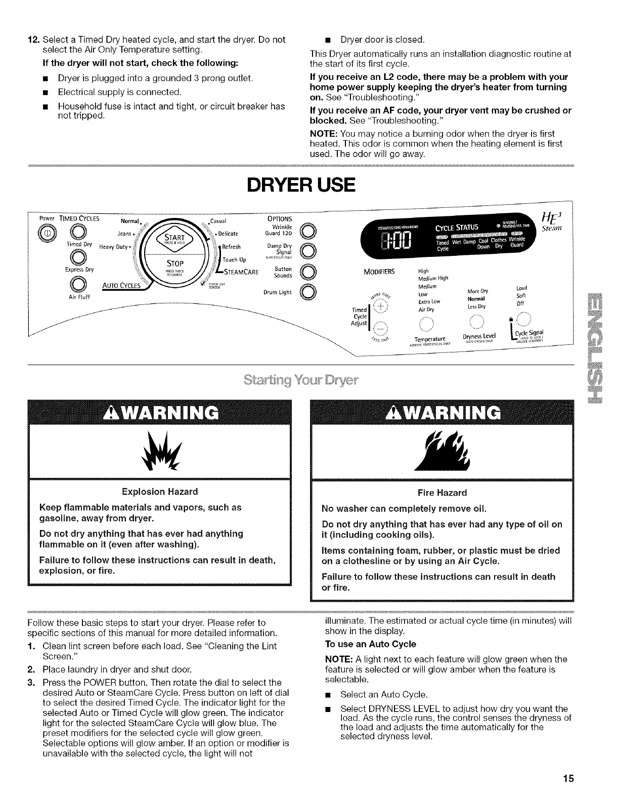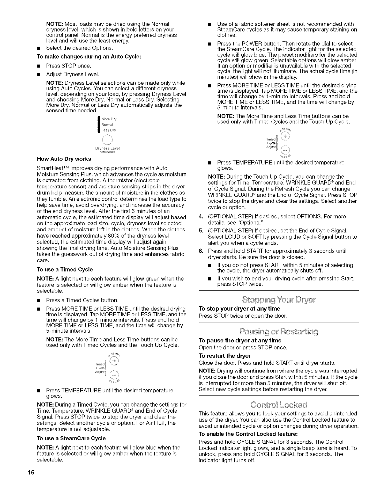 Kenmore Elite 11096742700 User Manual DRYER Manuals And Guides L0708328