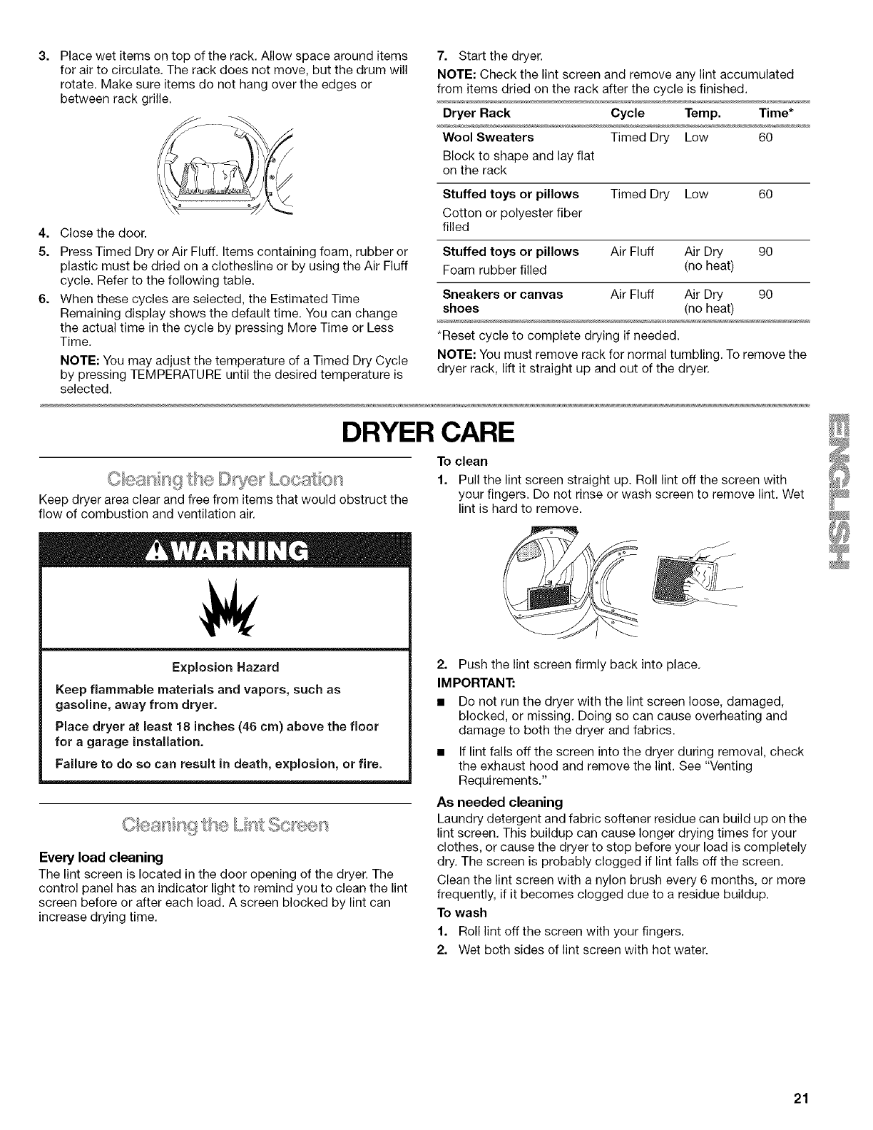 TUMBLE FREETM Heated Dryer Rack ....................................... 20