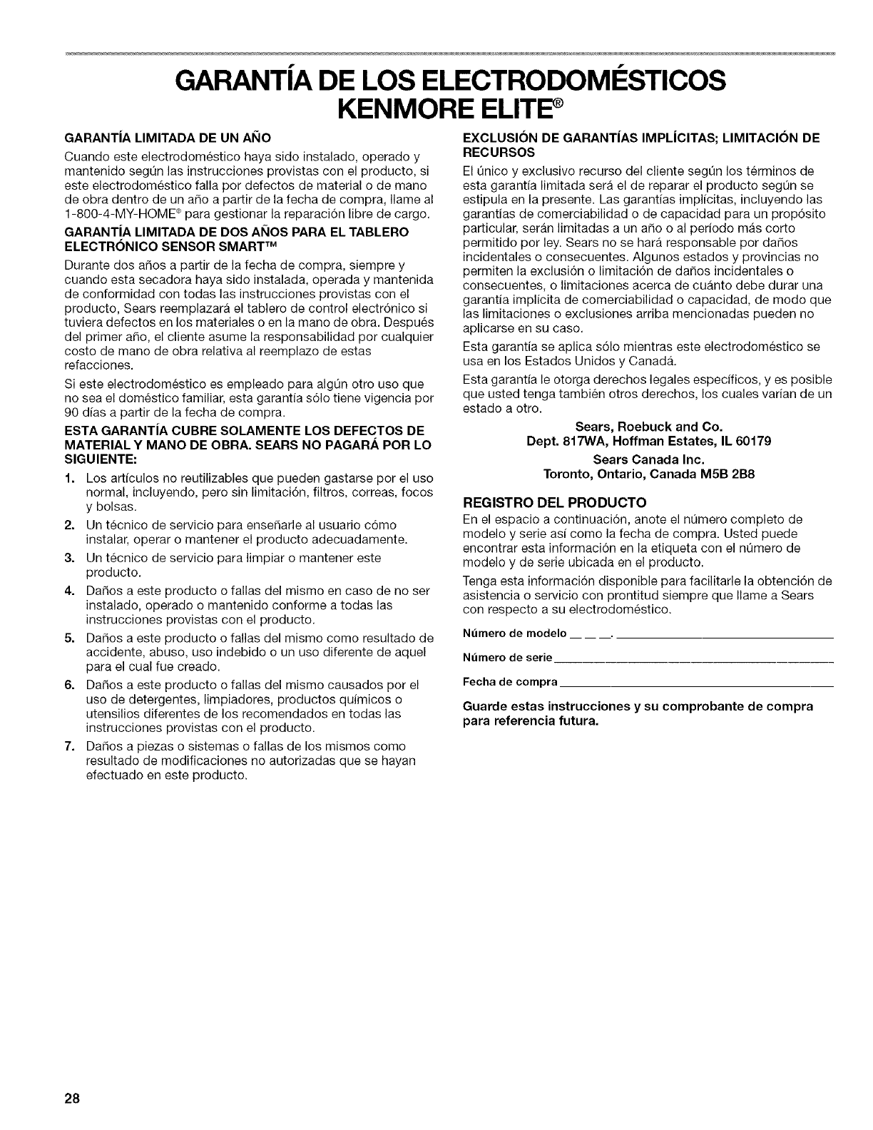 Kenmore ®esta disefiado y fabricado para proporcionarle afios de
