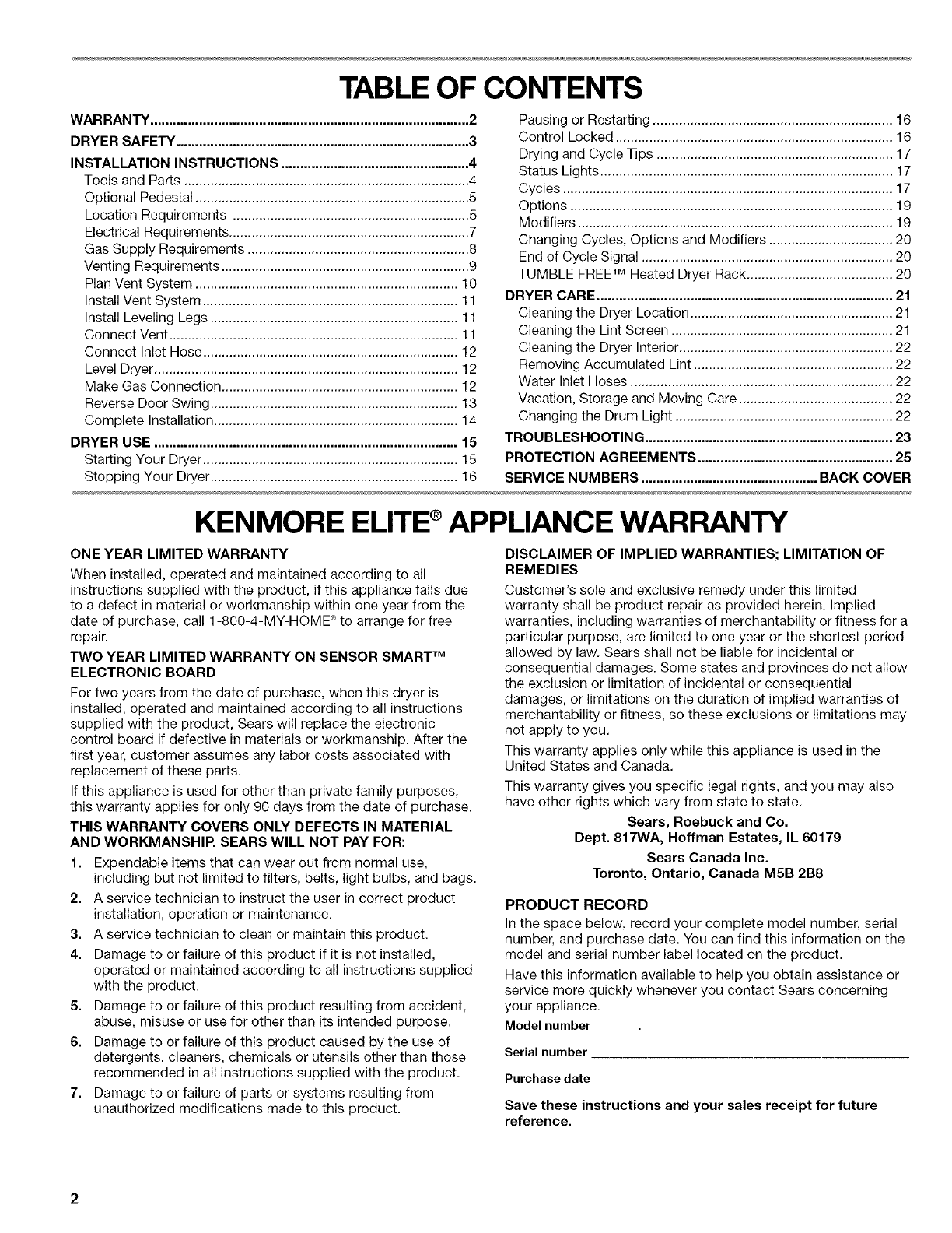 KENMORE ELITE Residential Dryer Manual L0708328 KENMORE ELITE Residential Dryer Owner's Manual, KENMORE ELITE Residential Dryer installation guides