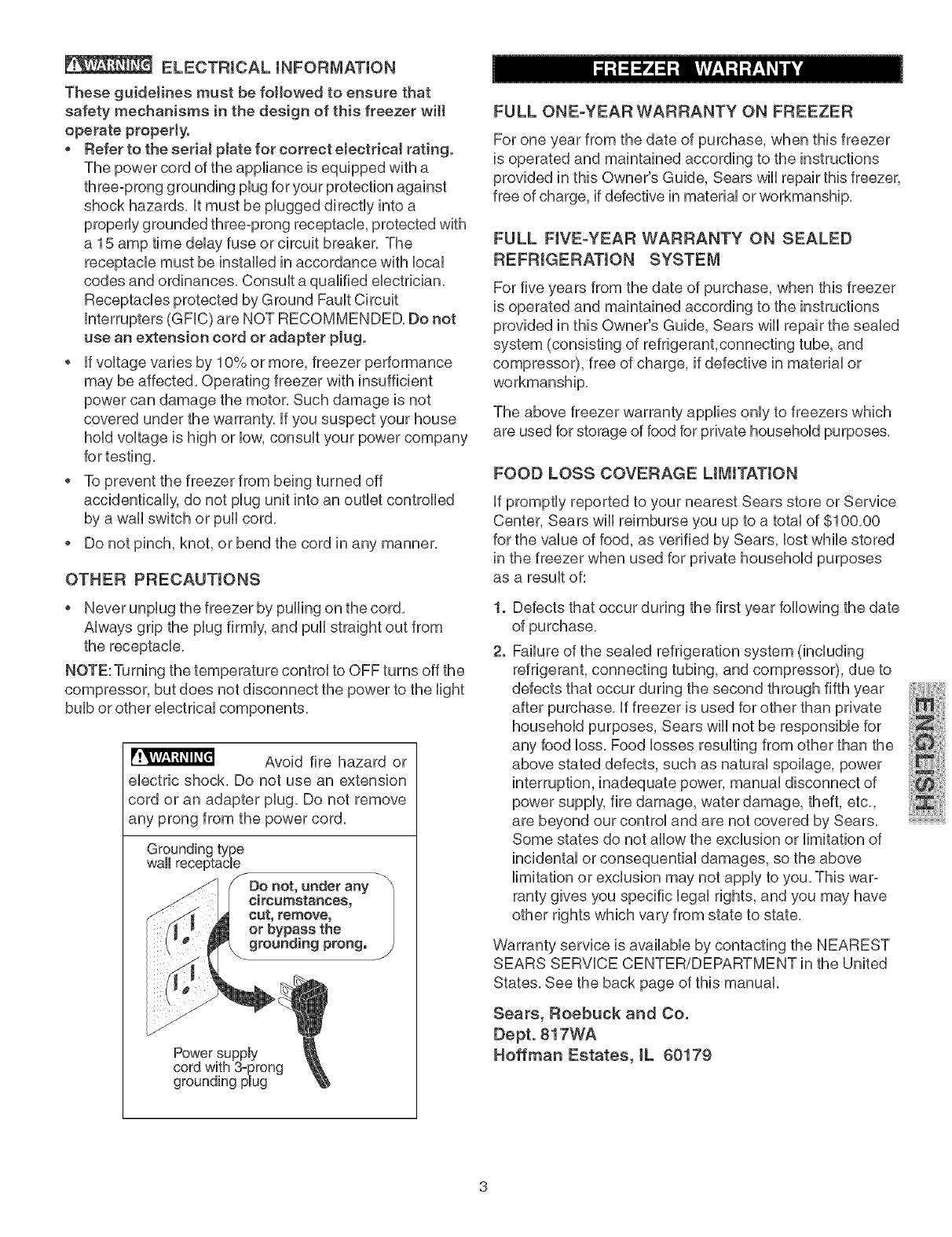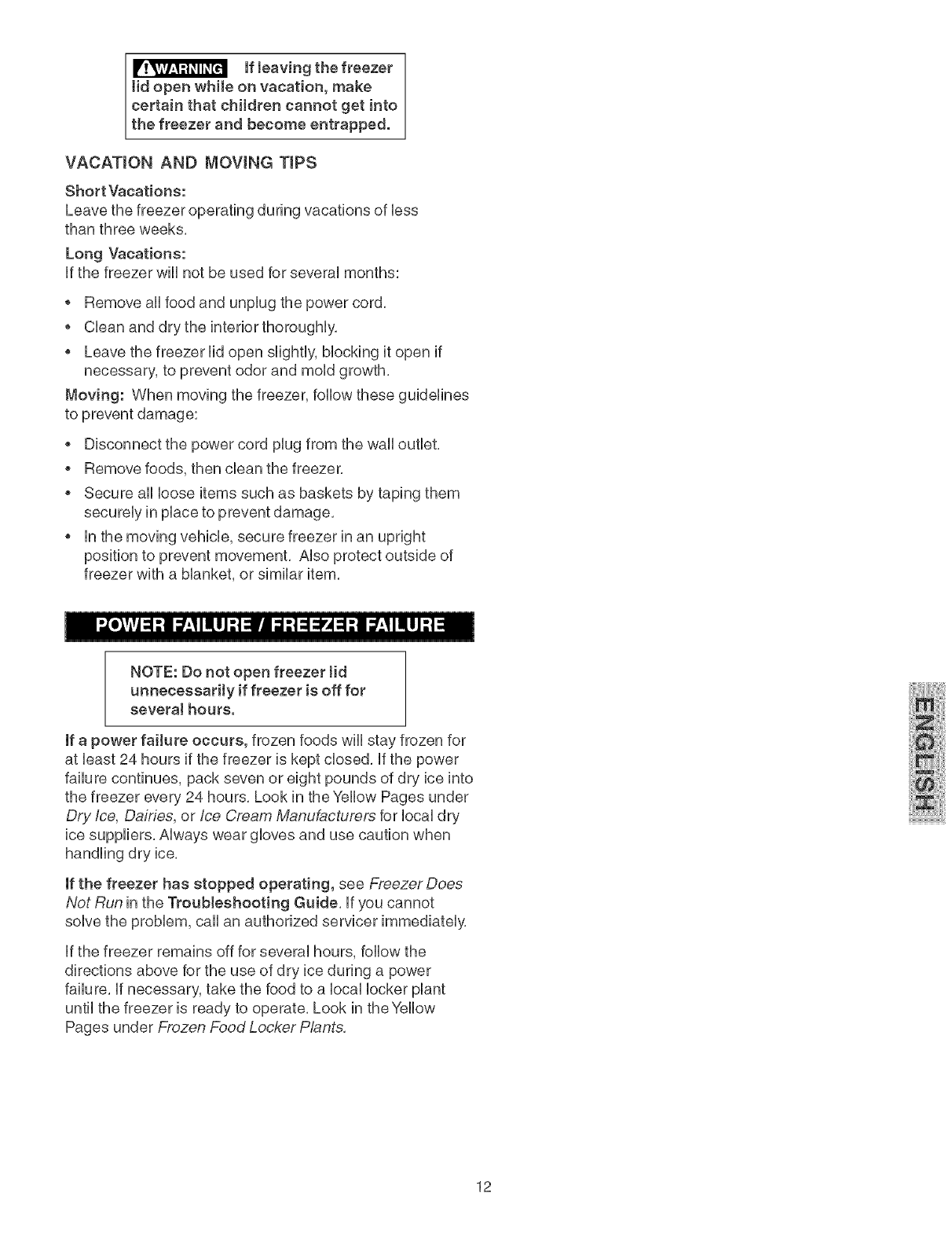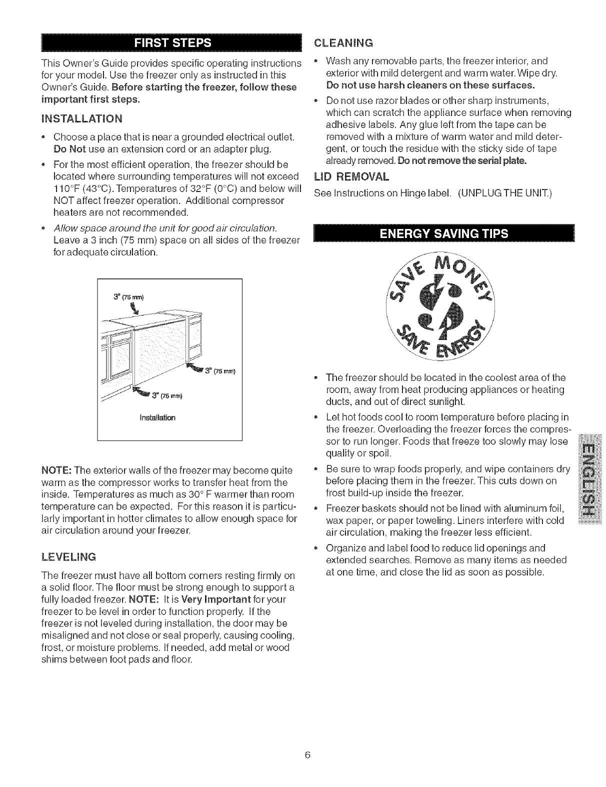 KENMORE ELITE Chest Freezer Manual L0411278 KENMORE ELITE Chest Freezer Owner's Manual, KENMORE ELITE Chest Freezer installation guides