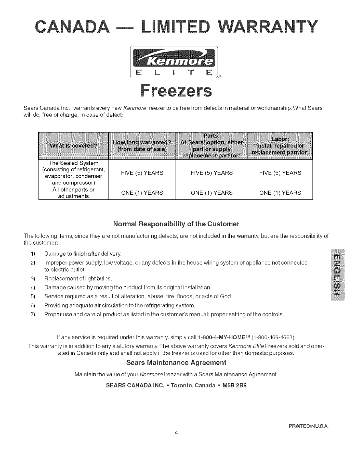 Kenmore Elite 25314772100 User Manual FREEZER Manuals And Guides L0411278