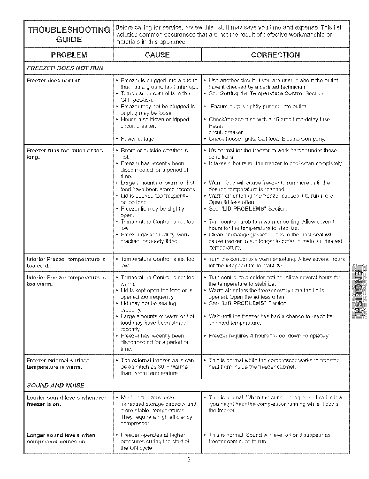 Interior Freezer temperature is • Temperature Control is set too ,, Turn the control to a warmer setting. Allow several hours