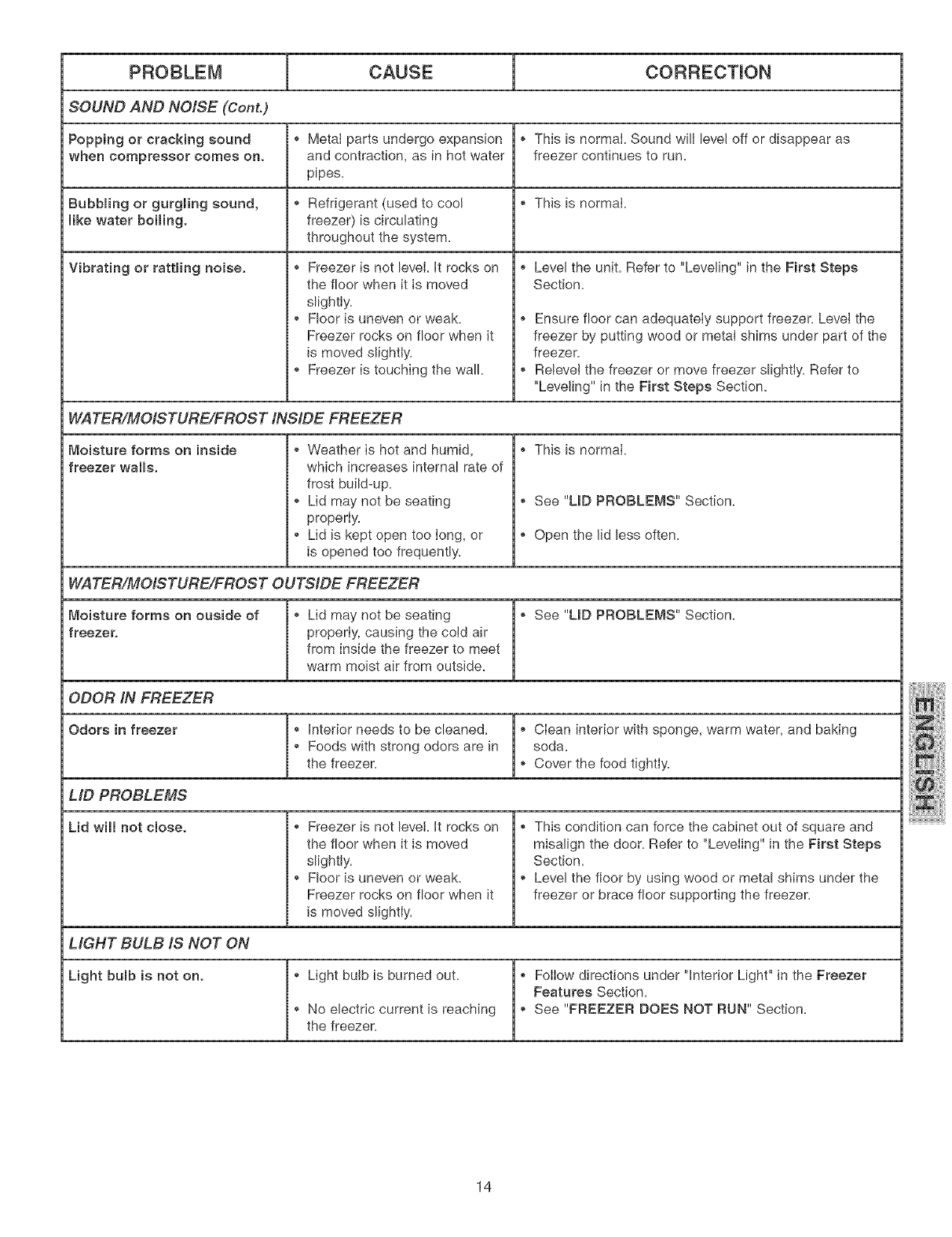 Longer sound levems when o Freezer operates at higher ,, This is normal. Sound will leveI off or disappear as