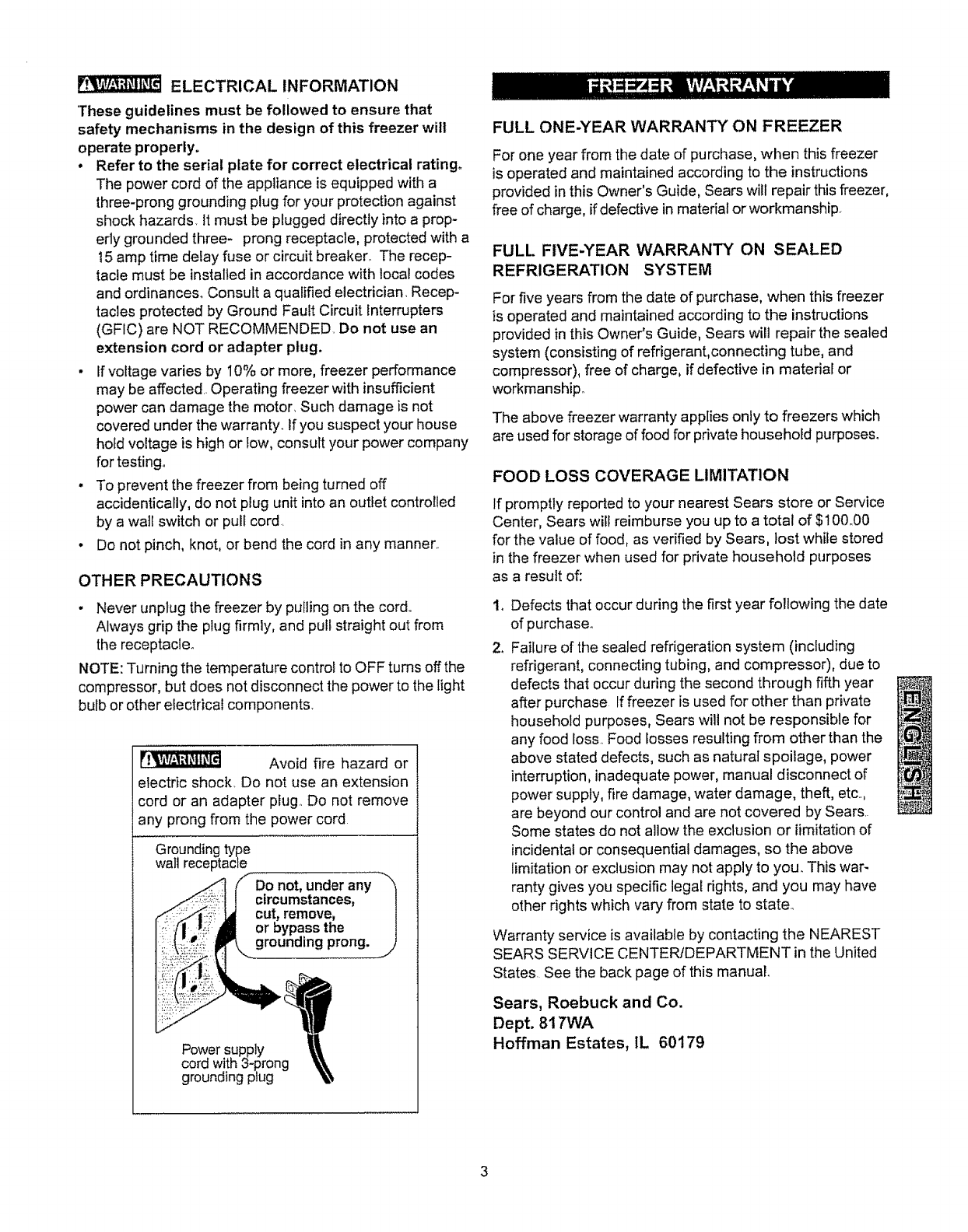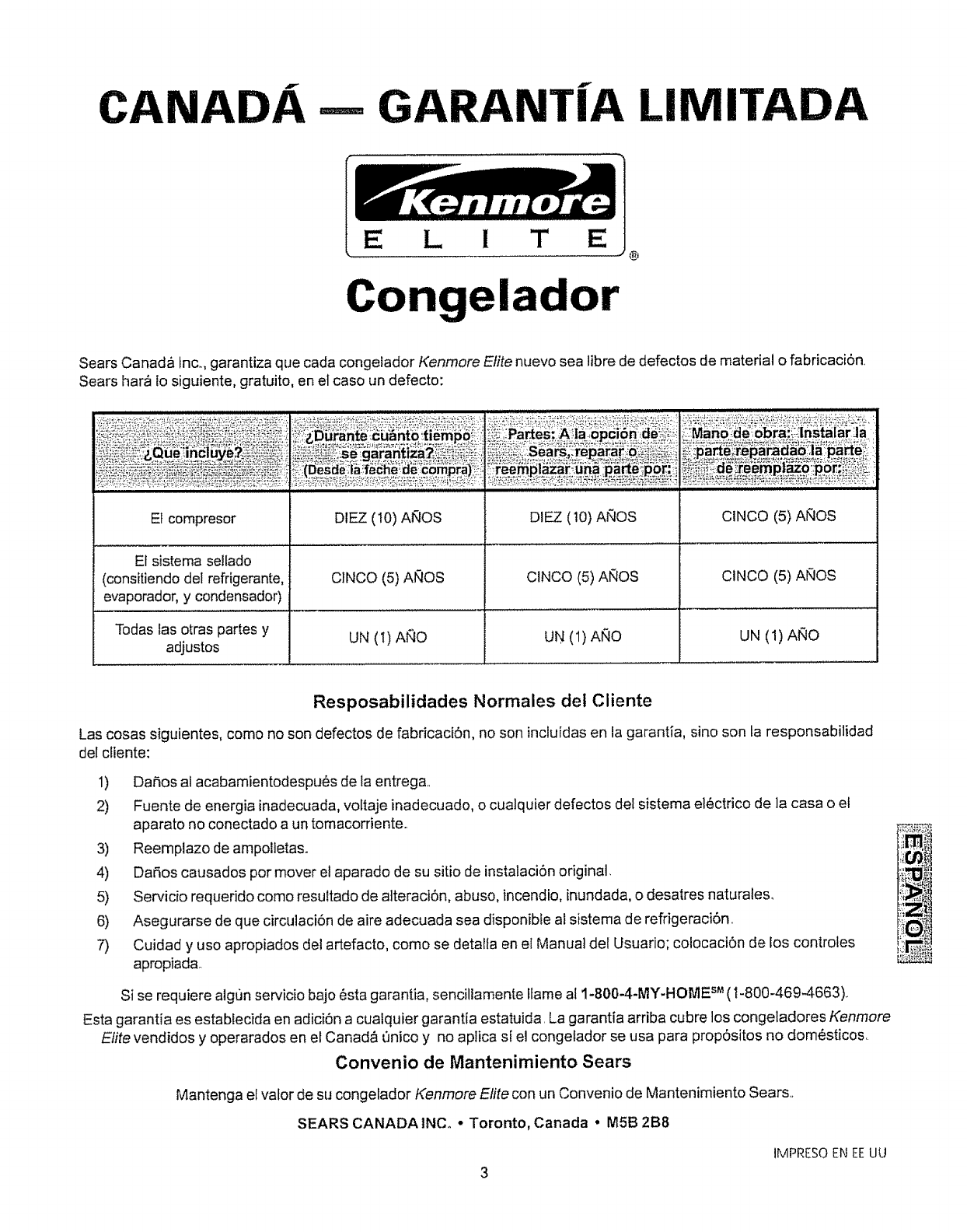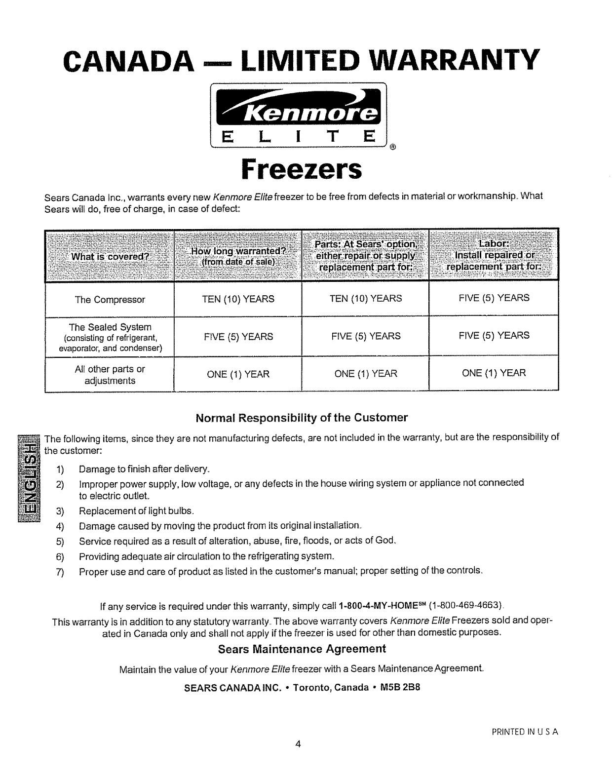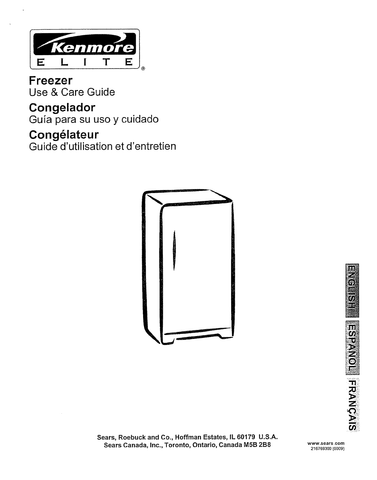KENMORE ELITE Upright Freezer Manual L0809546 KENMORE ELITE Upright Freezer Owner's Manual, KENMORE ELITE Upright Freezer installation guides