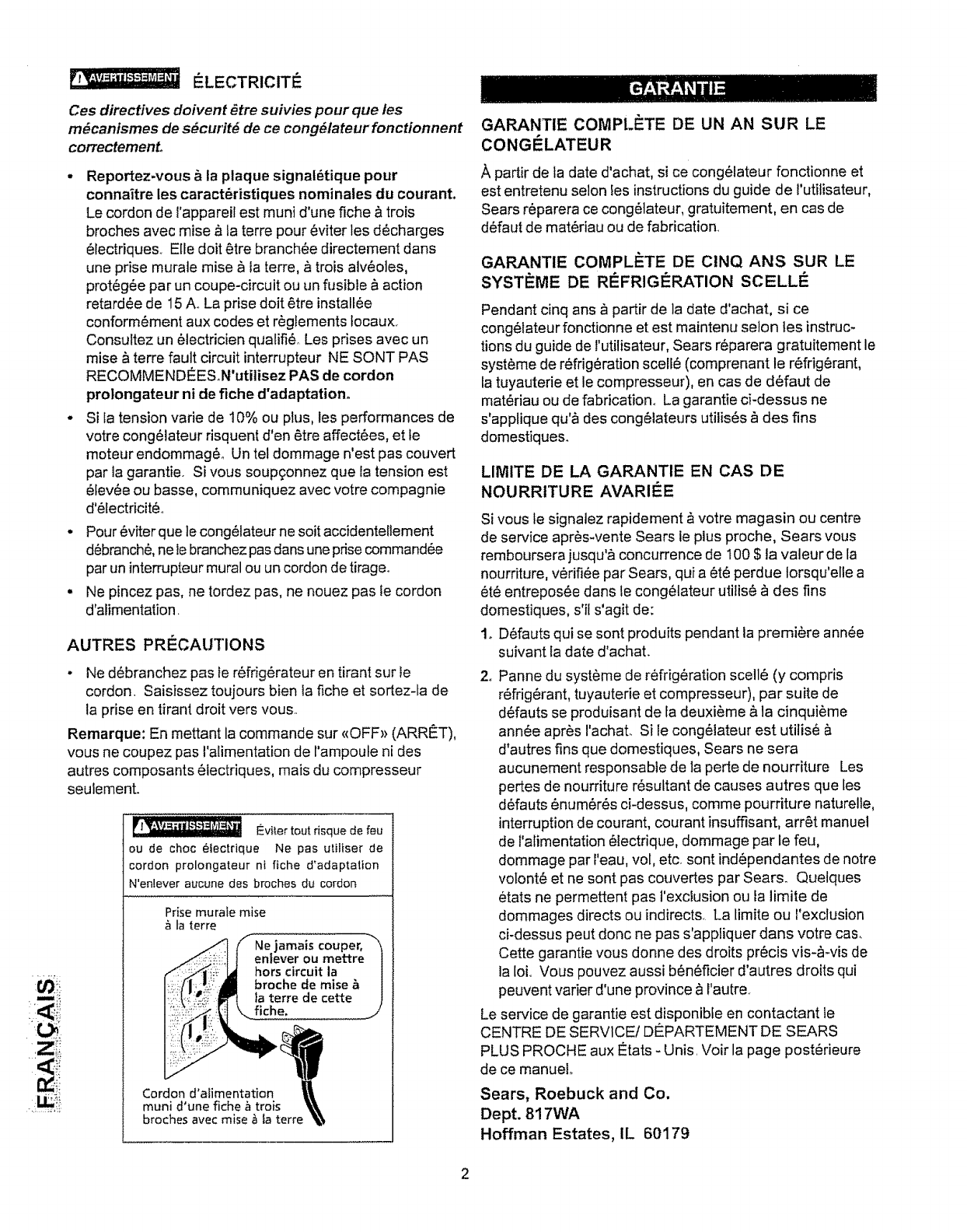 soit defectueuse, prenez contact avec te magasin Sears le plus