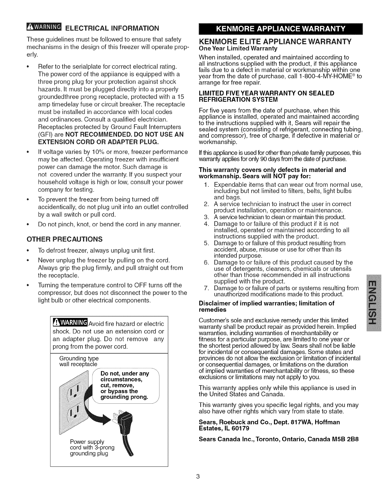 Kenmore Appliance Warranty .............. 3