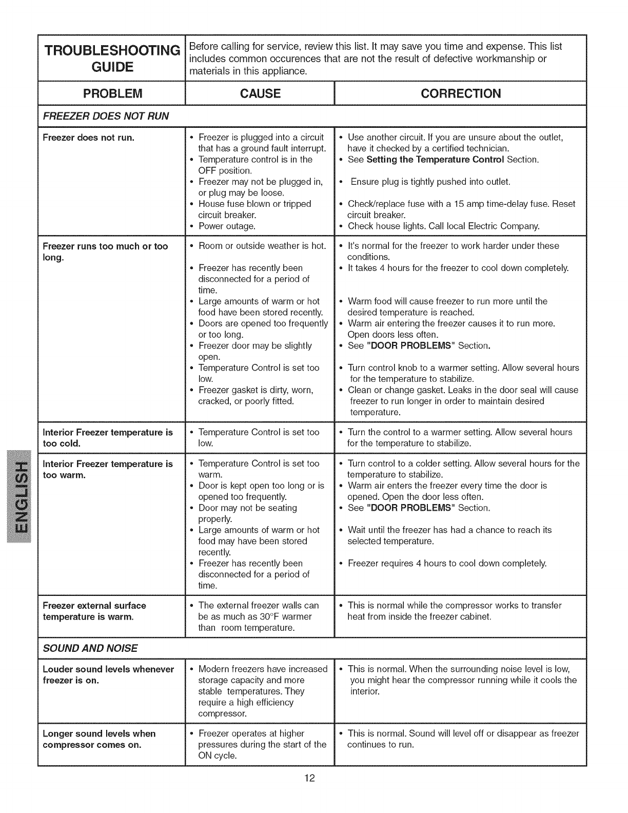 freezer to run longer in order to maintain desired