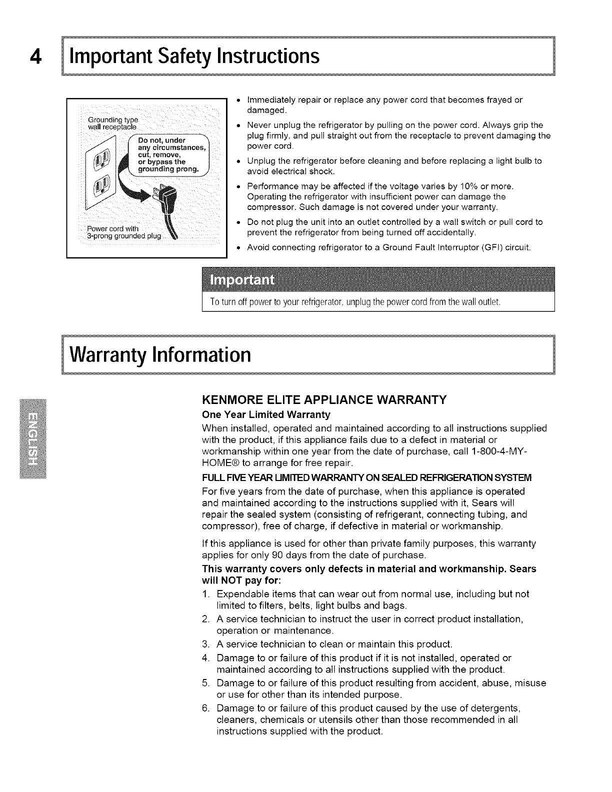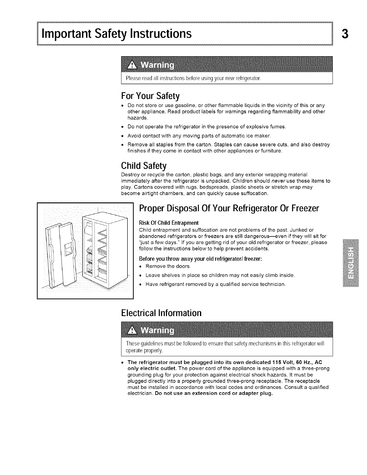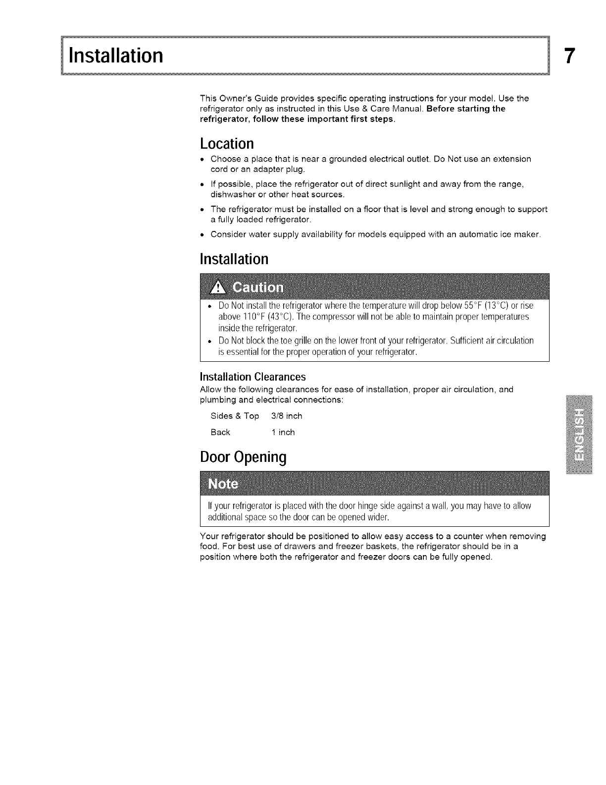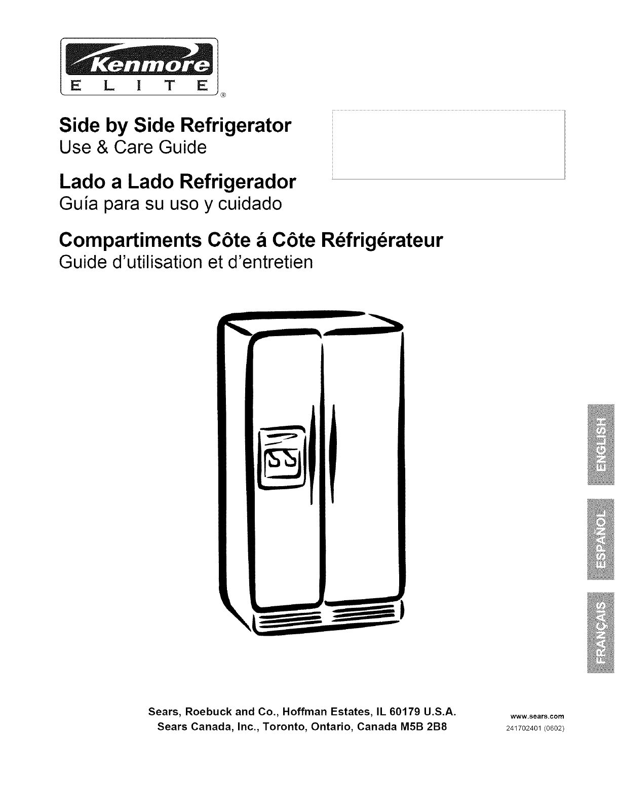 KENMORE ELITE Side by Side Refrigerator Manual L0703241 KENMORE ELITE Side by Side Refrigerator Owner's Manual, KENMORE ELITE Side by Side Refrigerator installation guides