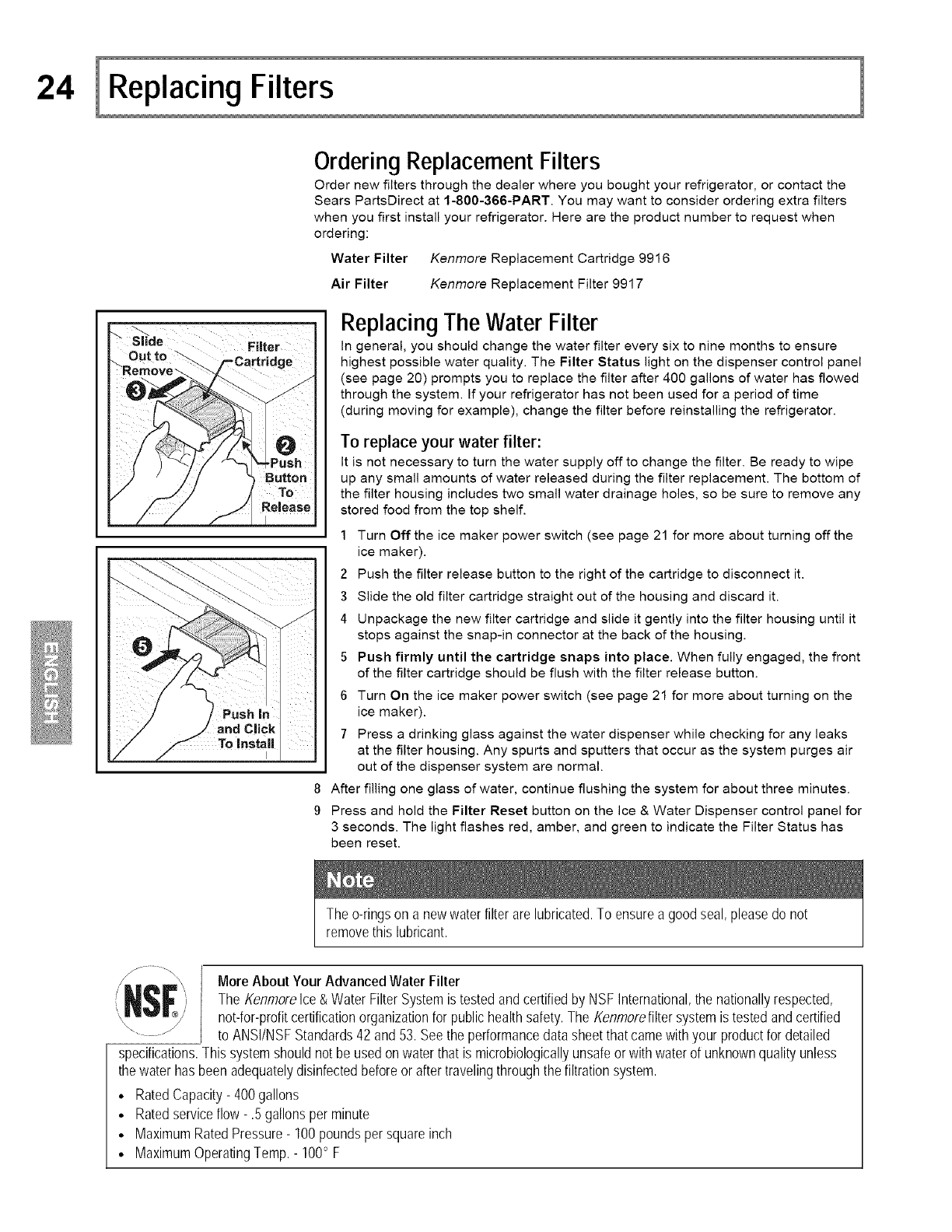 • The ice & water filter cartridf:le could be cloflqed. Replace the filter