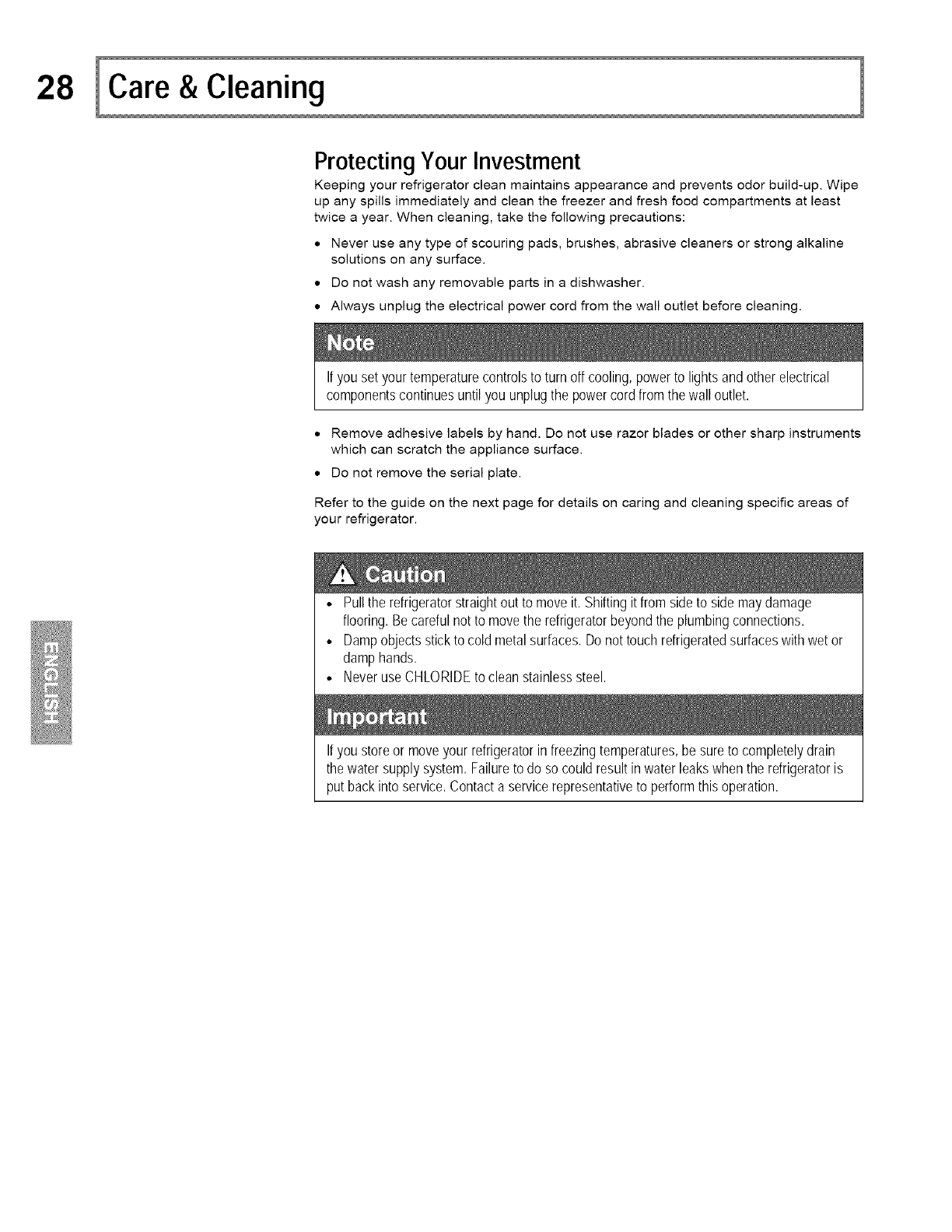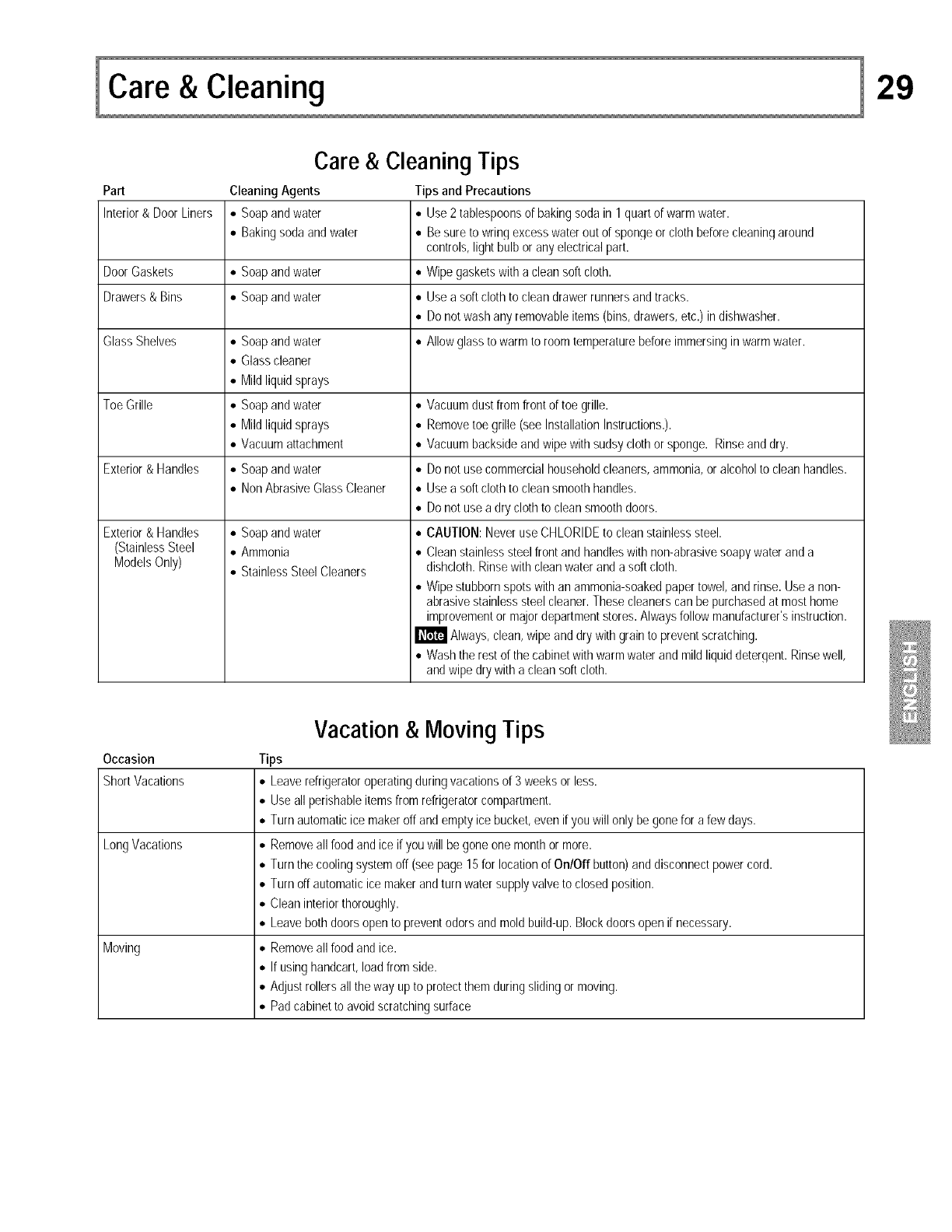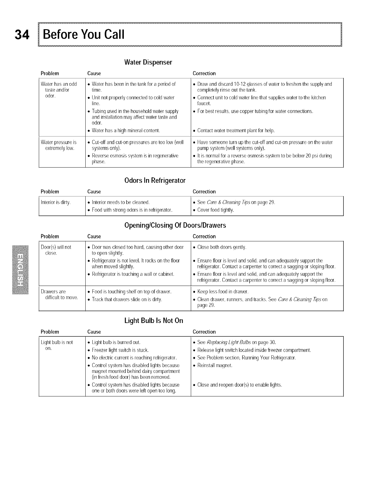 Interior is dirty. • Interior needs to be cleaned. • See Care & Cleaning Tipson page 29.