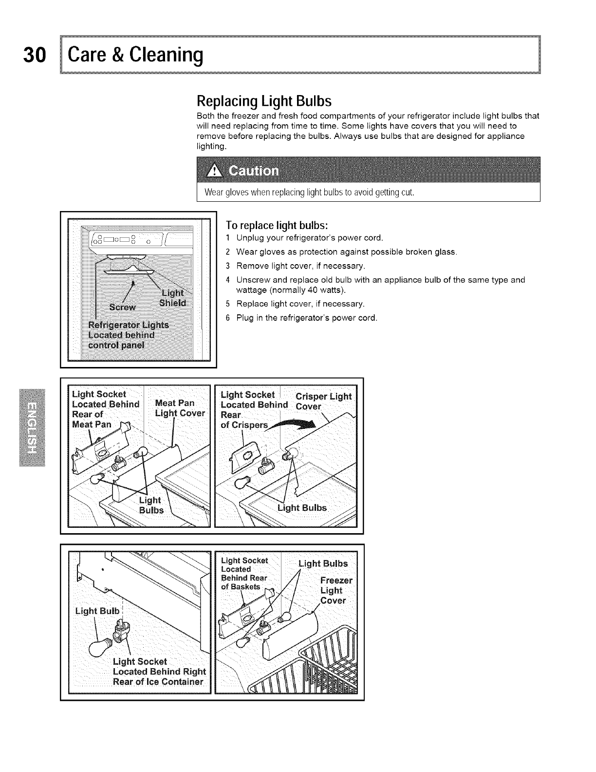 • Unplug the refrigerator before cleaning and before replacing a light bulb to