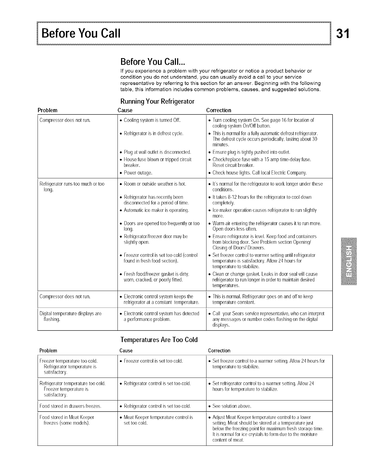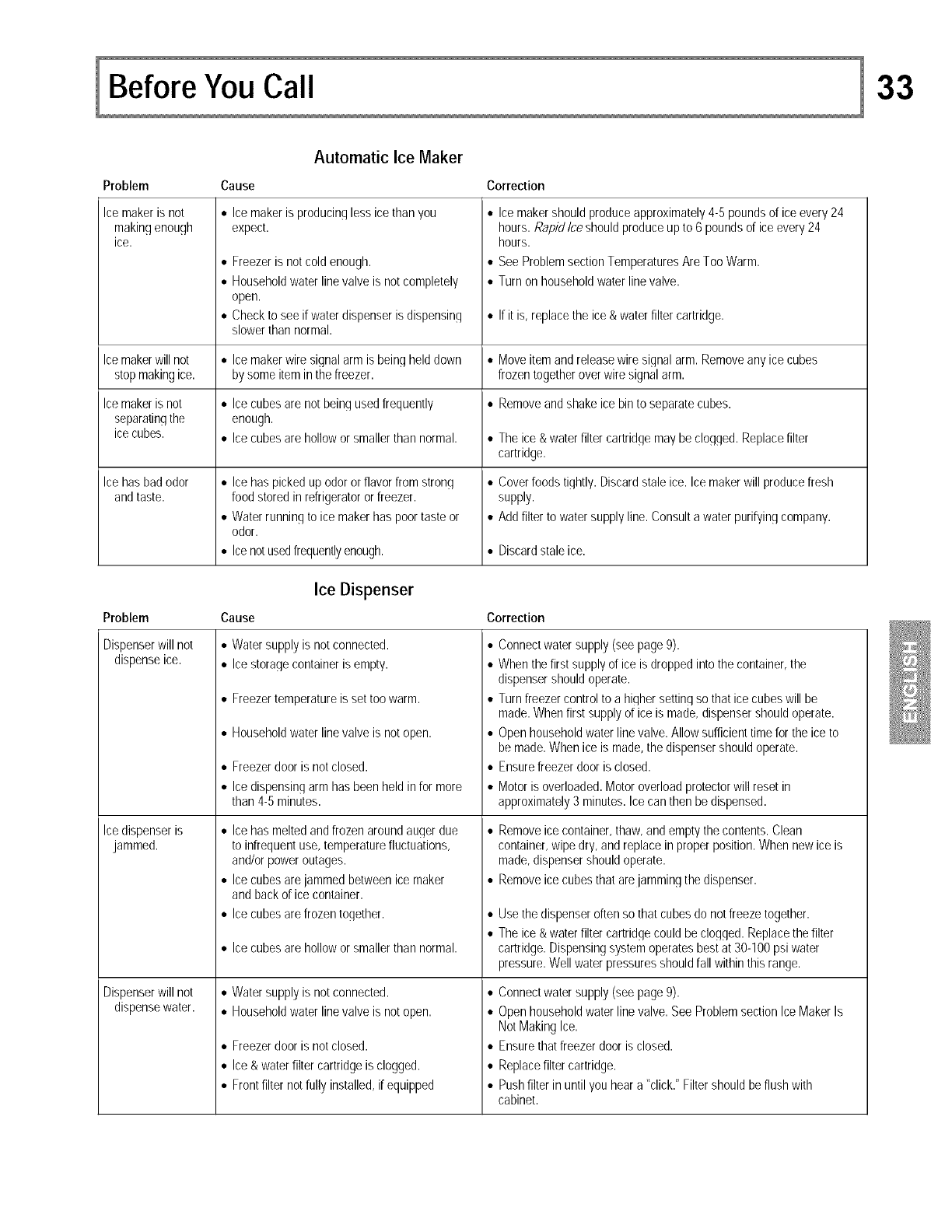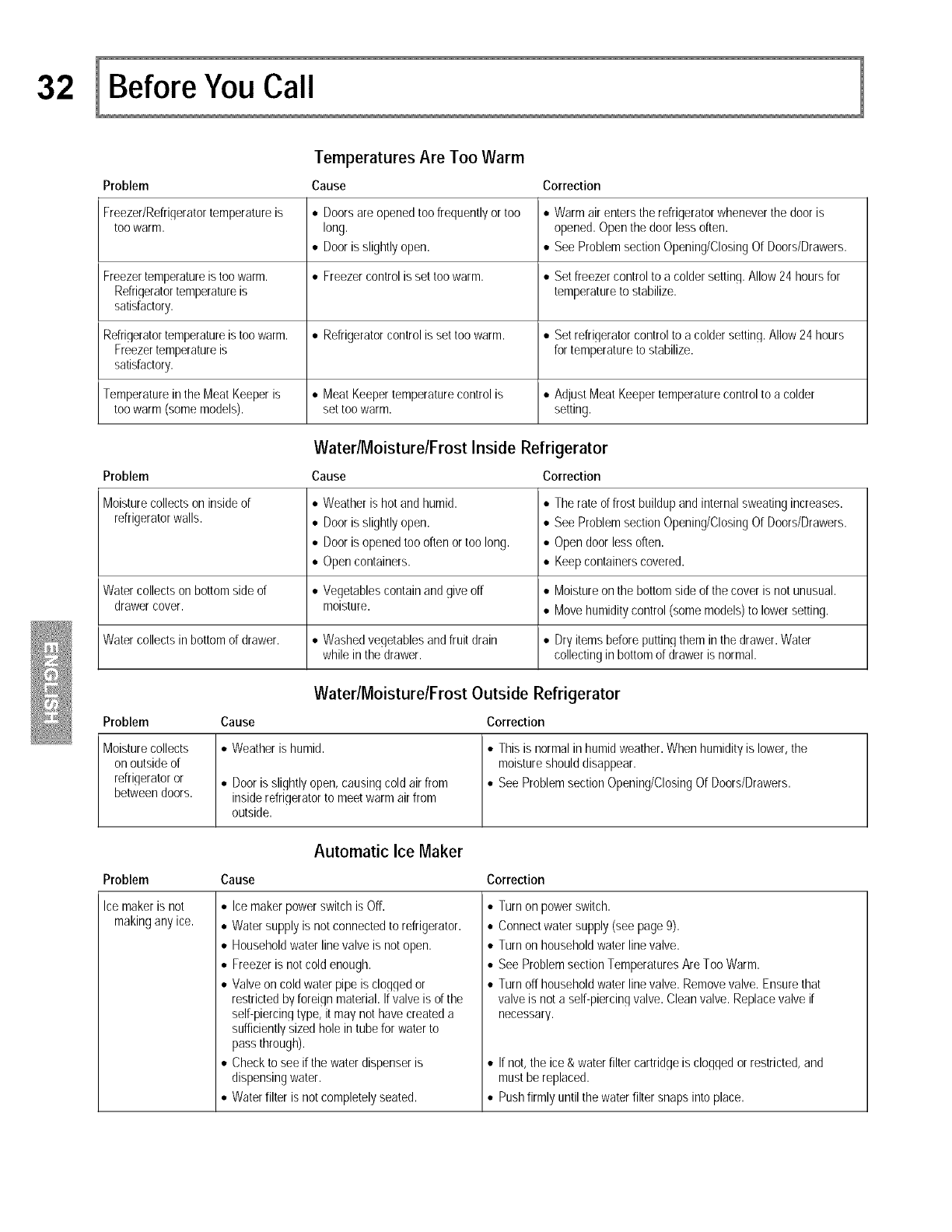 • Turn freezer control to a hiqher settinq so that ice cubes will be