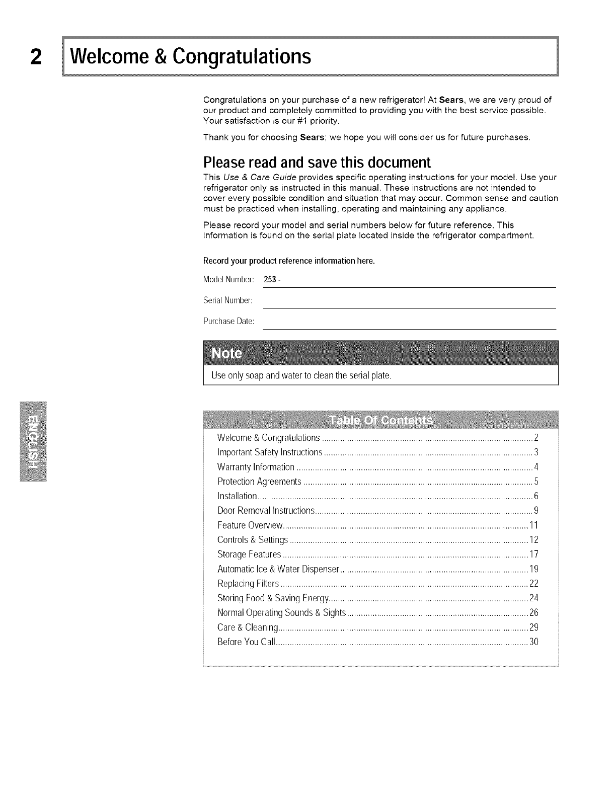 Congratulations on your purchase of a new refrigerator! At Sears, we are very proud of