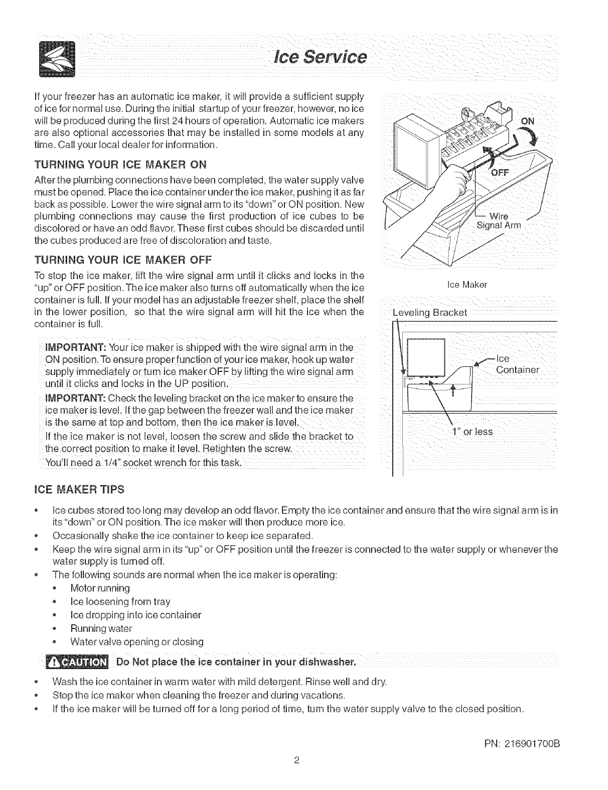 "up" or OFF position, The ice maker also turns off automatically when the ice
