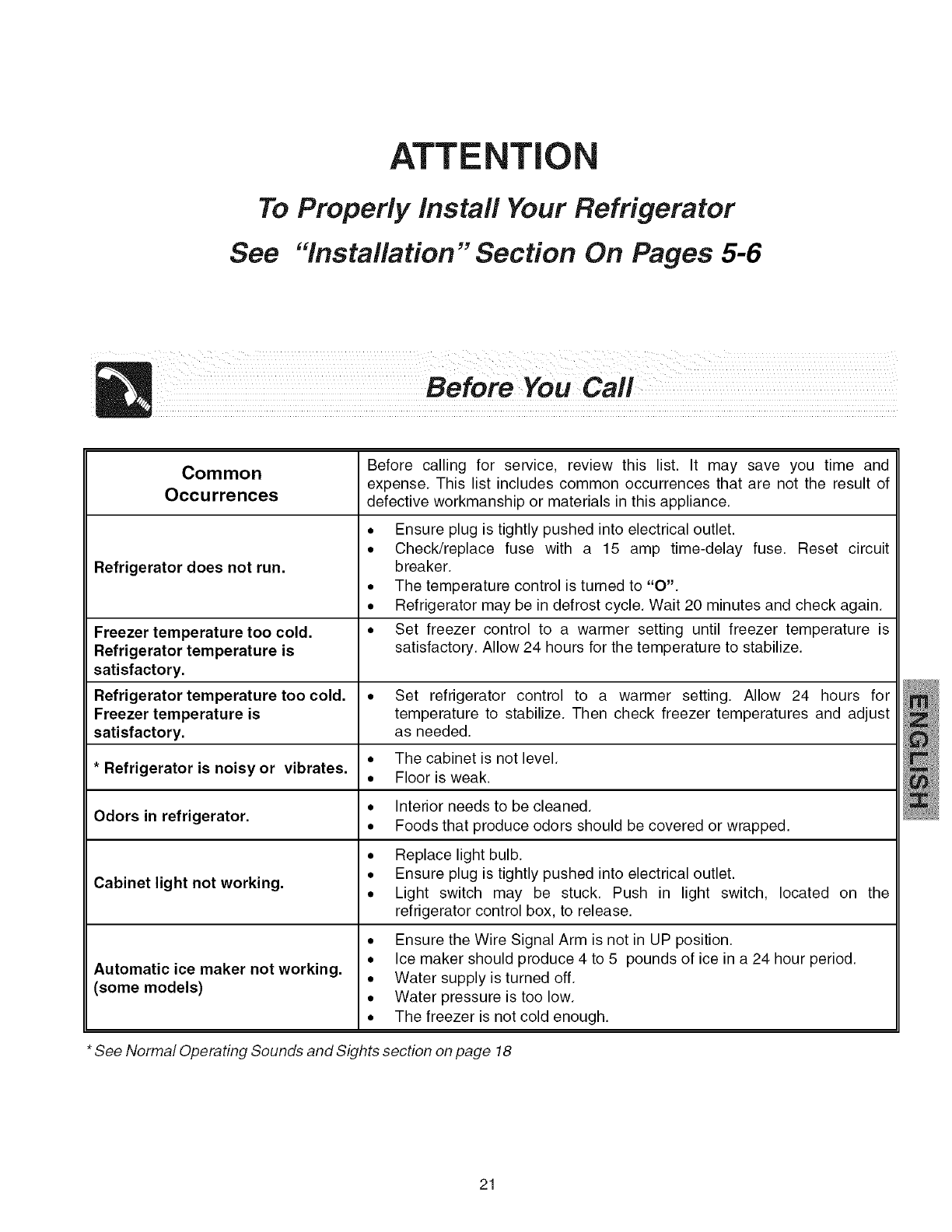 *Refrigerator is noisy or vibrates. • Floor is weak.