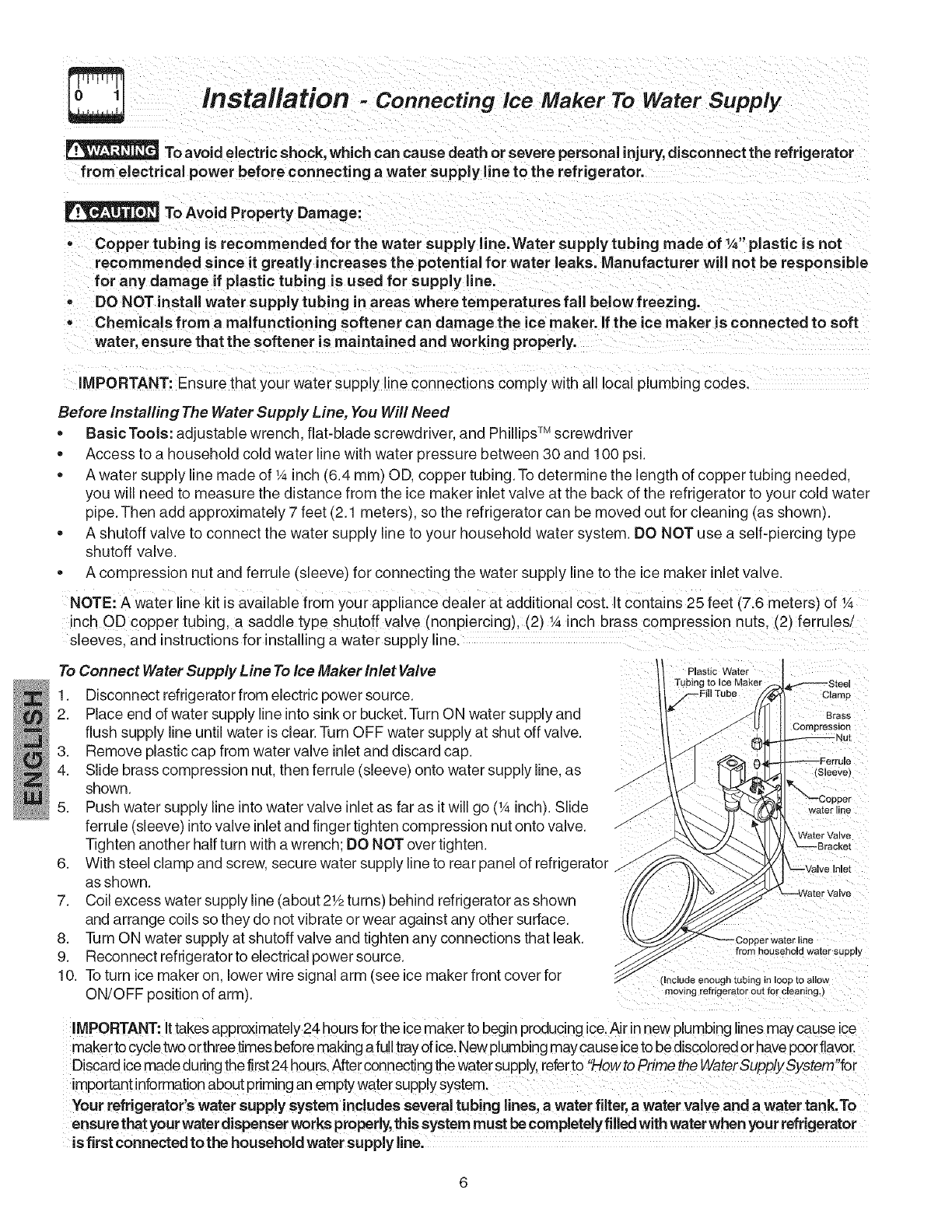 Long • Turn off automatic ice maker and turn water supply valve to closed position.