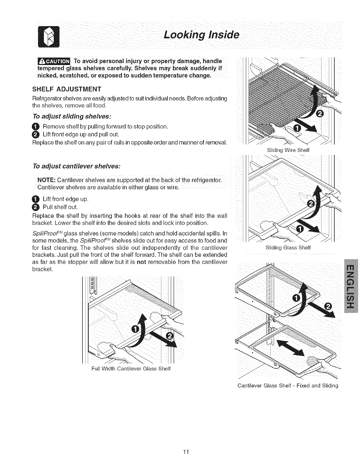 Glass Shelves •Soap and water Allow glass to warm to room temperature before immersing in warm water.