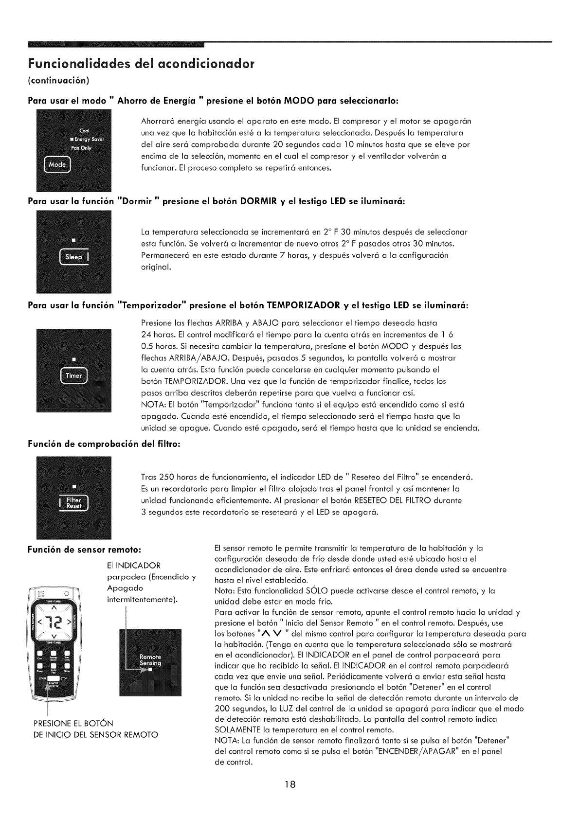 La habitaci6n est6 caliente y hOrneda. Esun funcionarniento normal durante los dfas rn6s c6lidos y hOrnedos.