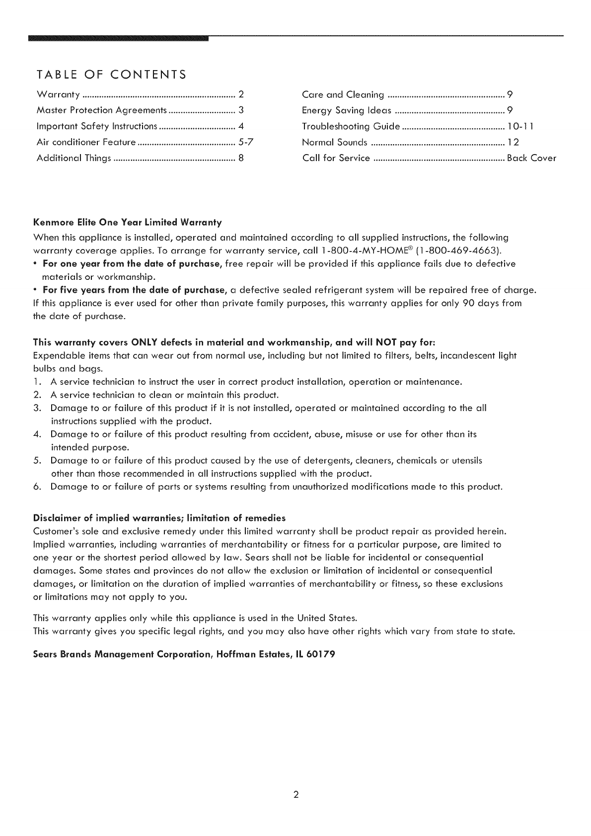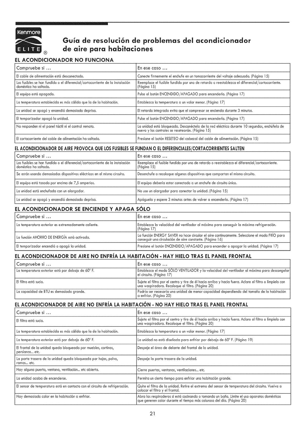 Kenmore Elite 25376085410 User Manual ROOM AIR CONDITIONER Manuals And Guides 1402596L