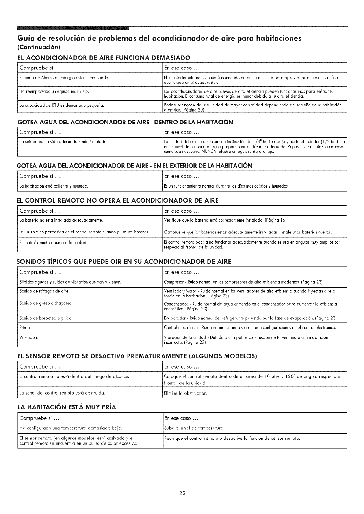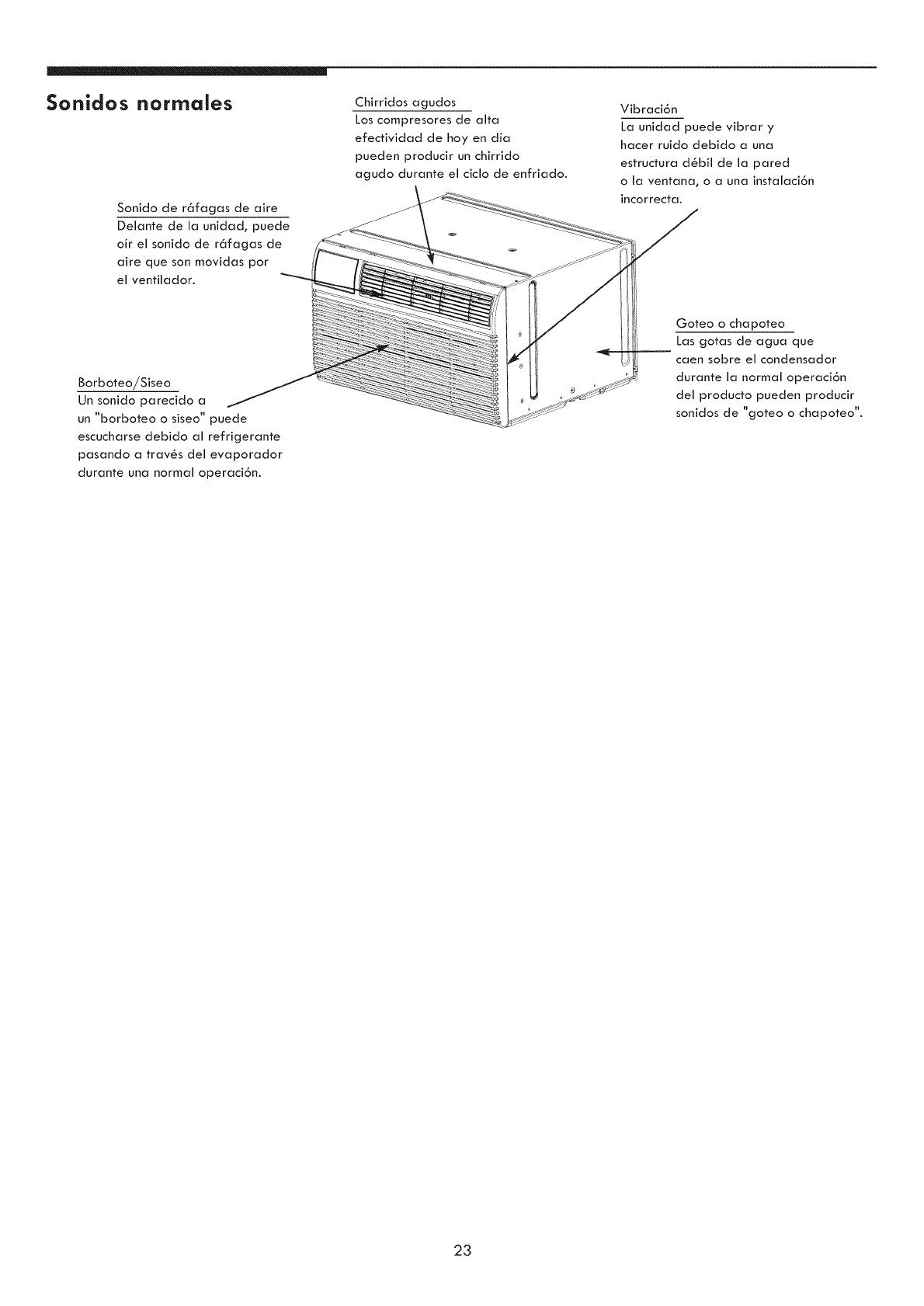 Vibraci6n. Vibraci6n de la unidad -Debido a una pobre construcci6n de la ventana o una instalaci6n