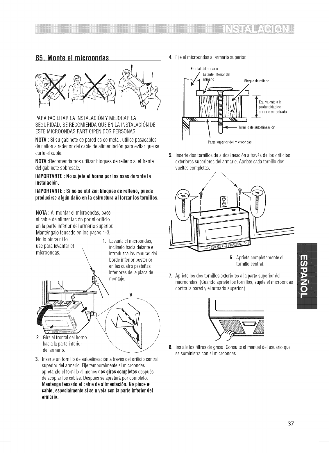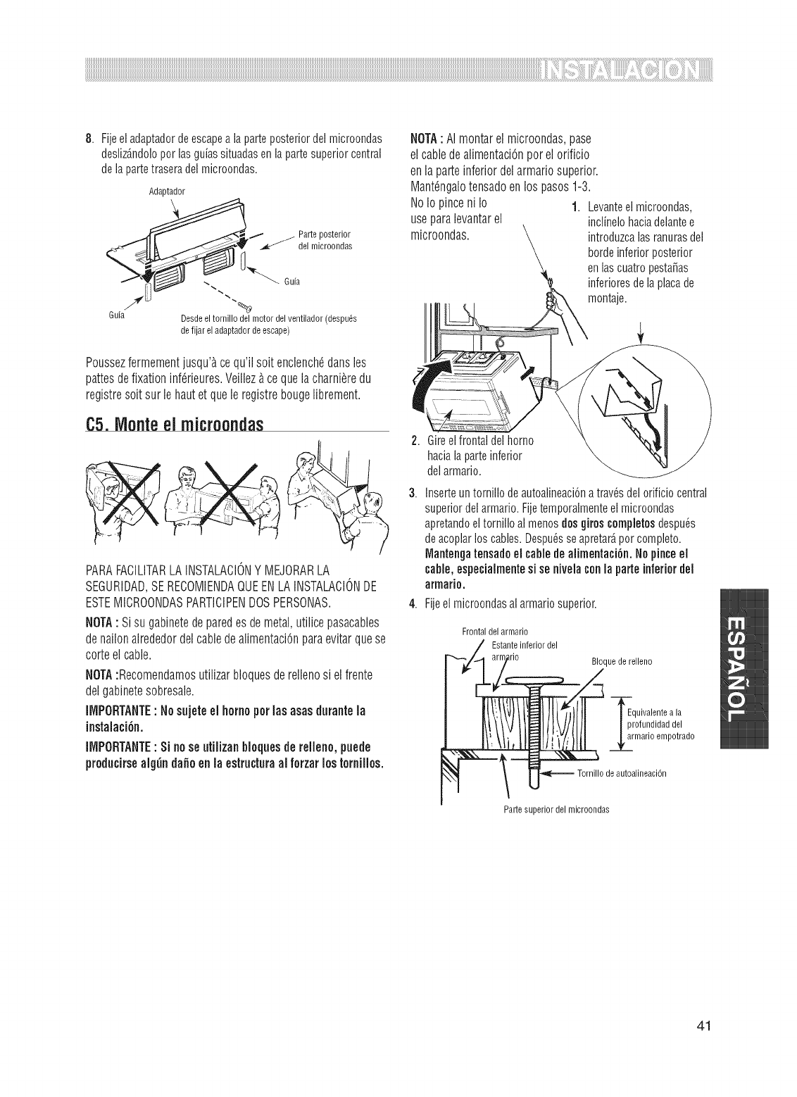 8. Fijeel adaptadorde escapea iaparteposteriordel microondas