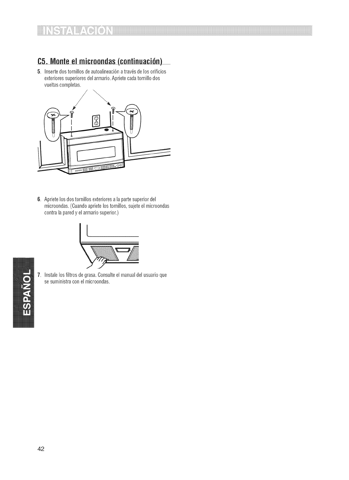 7. Instalelosfiltros de grasa.Consulteel manualdel usuarioque