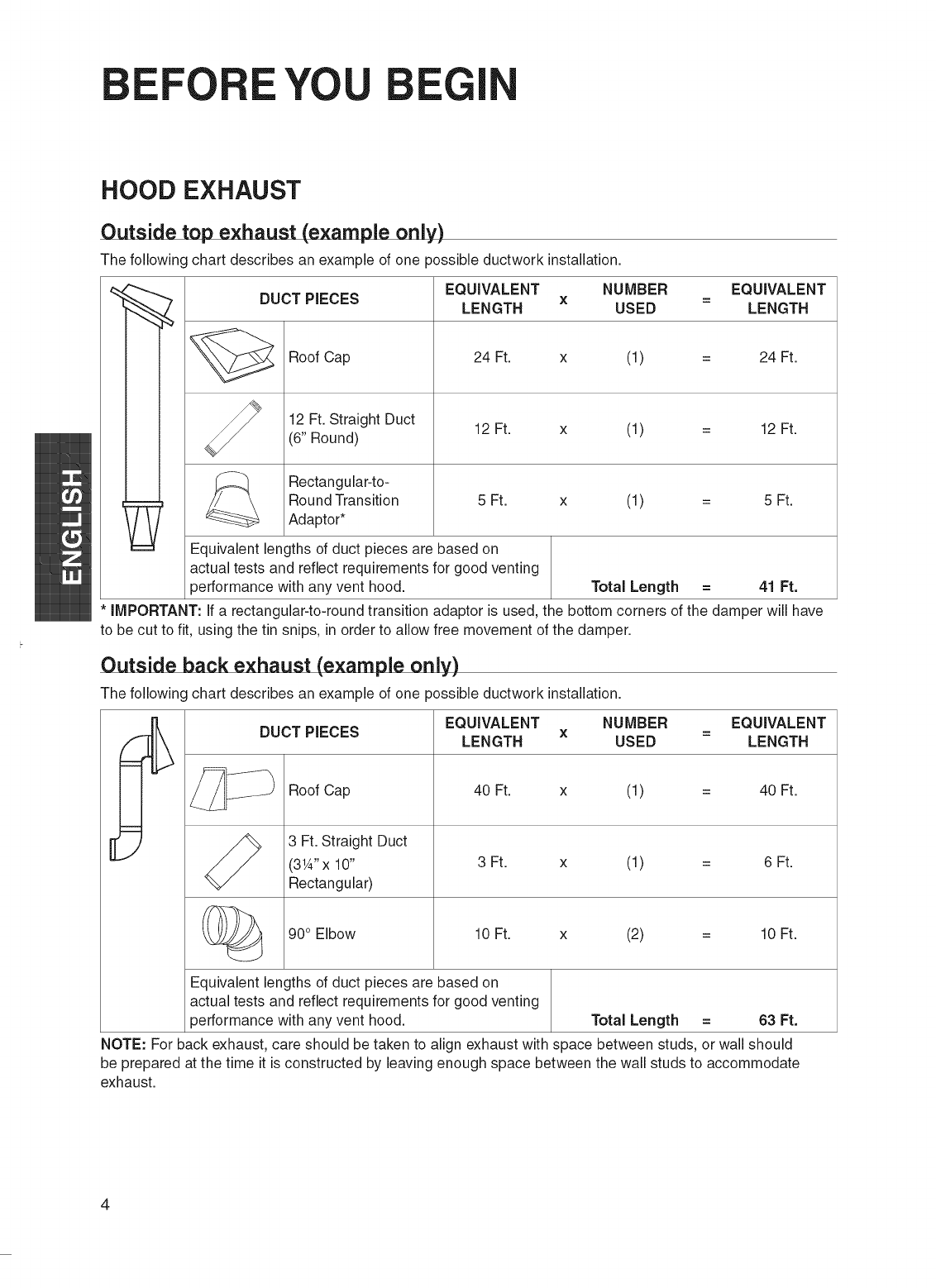 C. Outside Back Exhaust (Horizontal duct) ....... 18