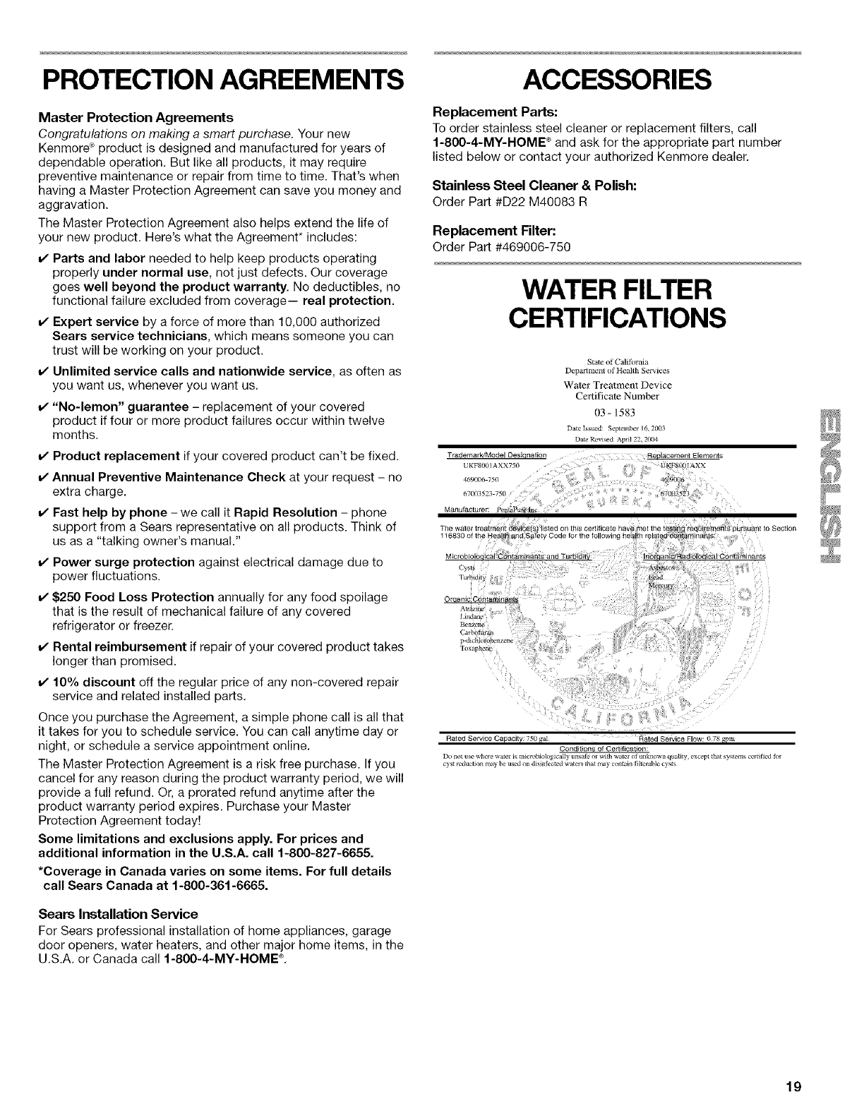 WATER FILTER CERTIFICATIONS .................................................. 19