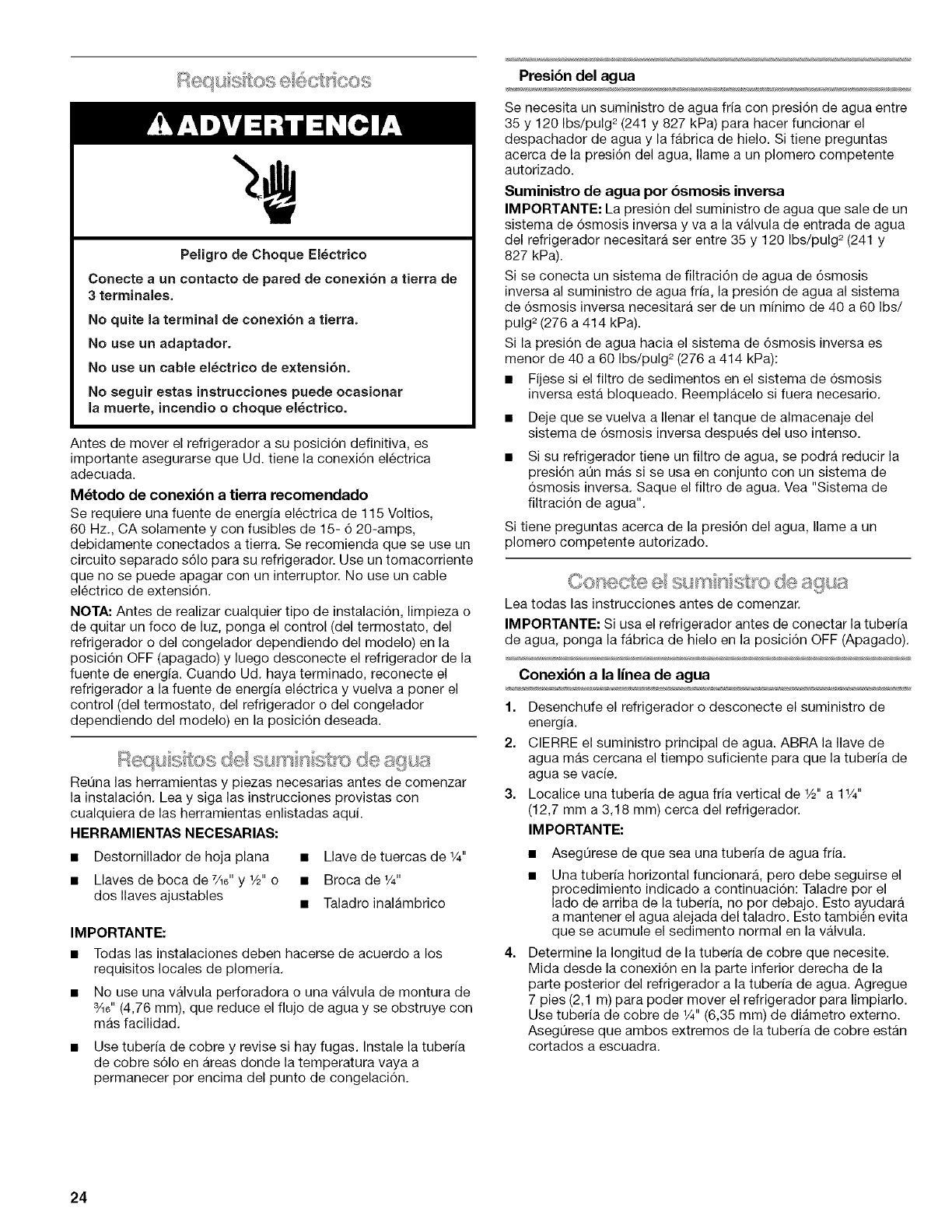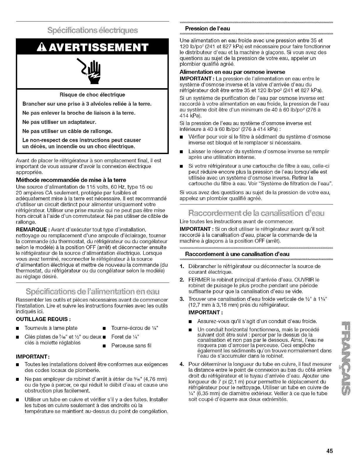 Pression de I'eau 35 - 120 Ib/po _ (241 - 827 kPa)