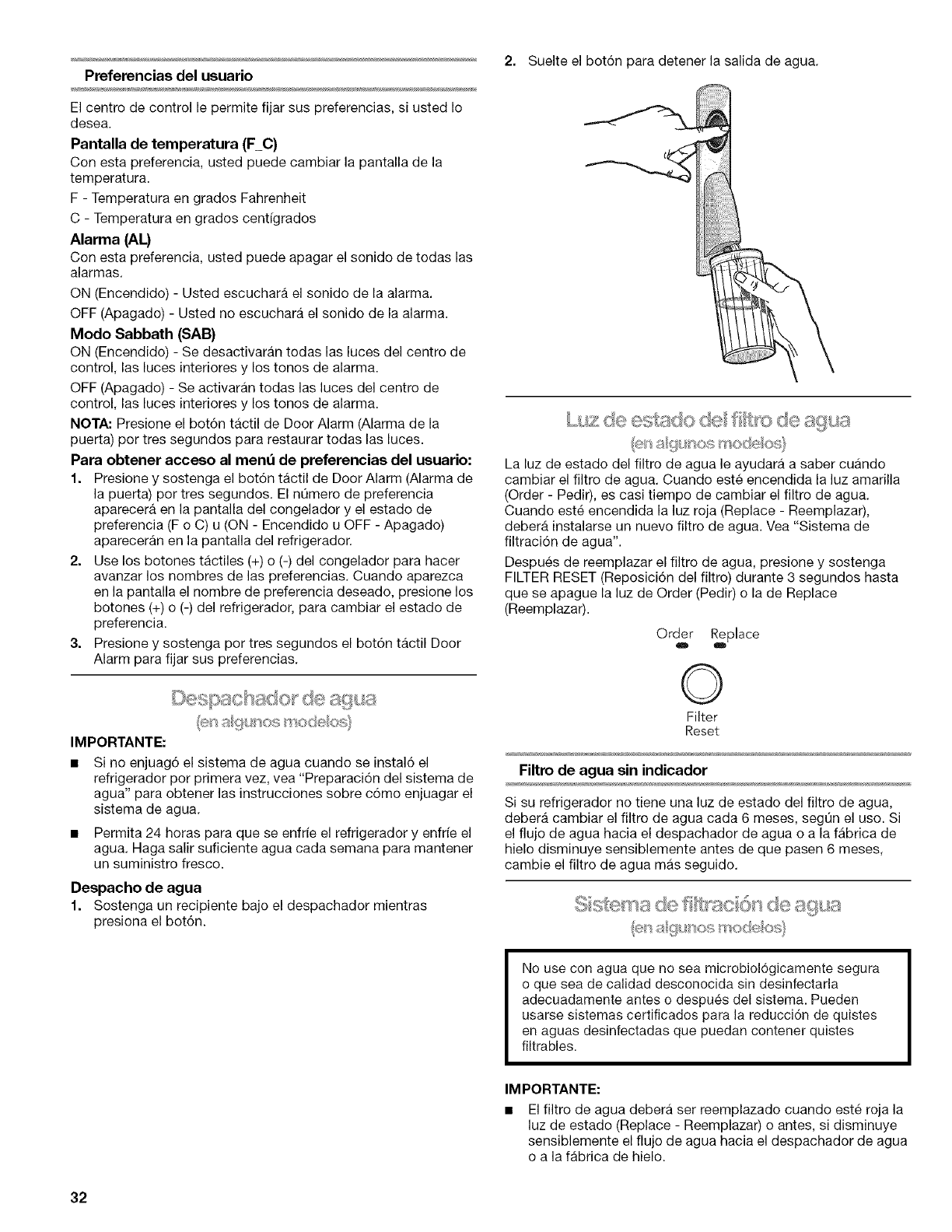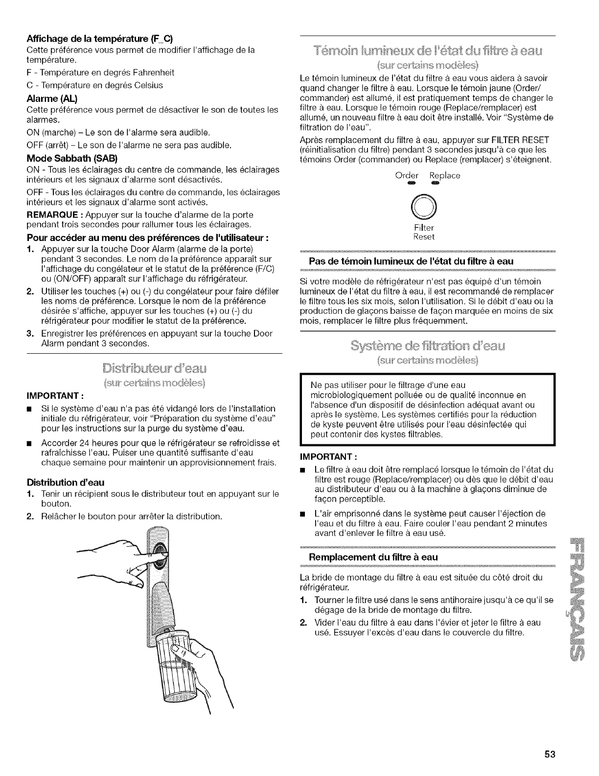 indicateur de I'etat du filtre tous les six mois. Utiliser une