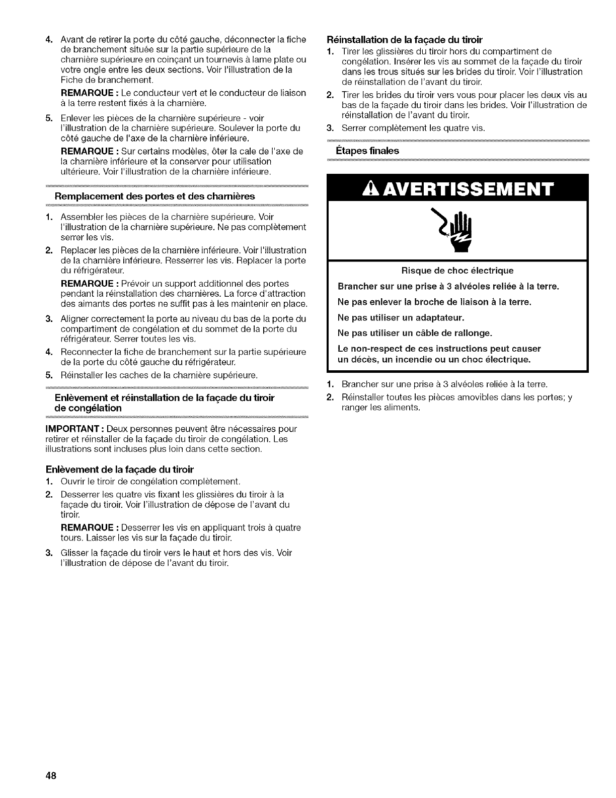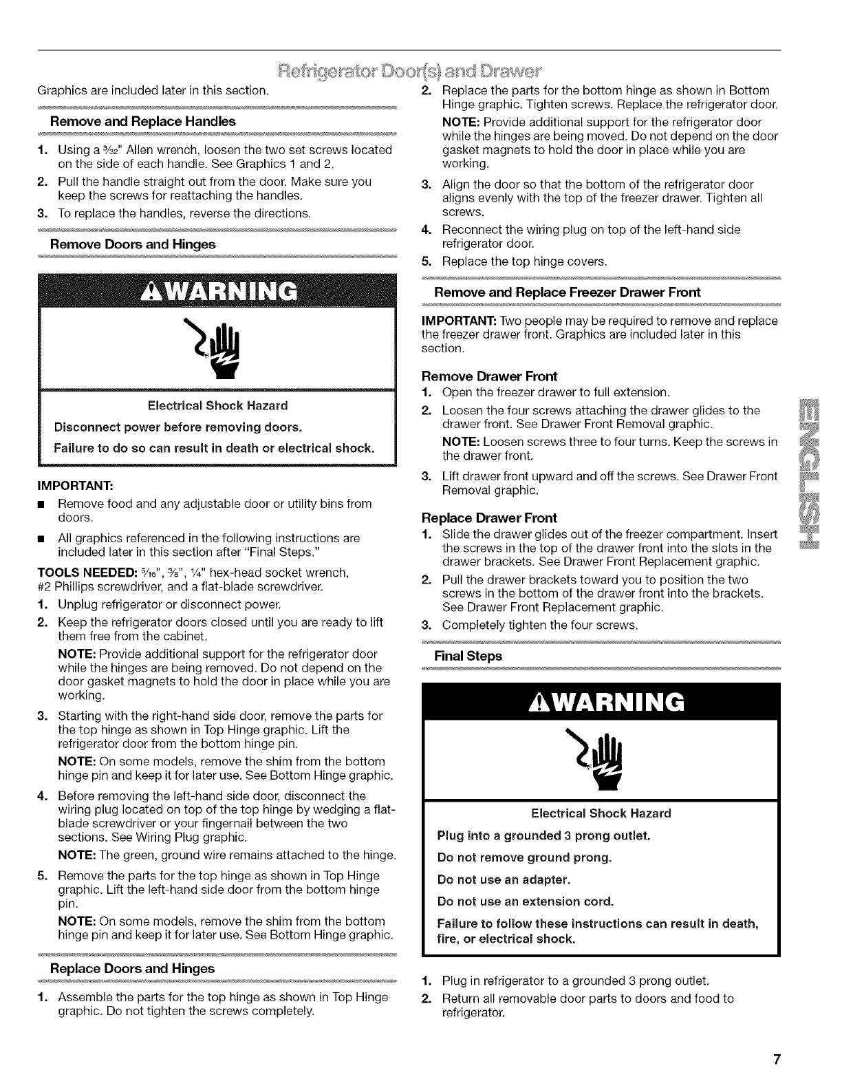 Refrigerator Door(s) and Drawer ........................................................ 7
