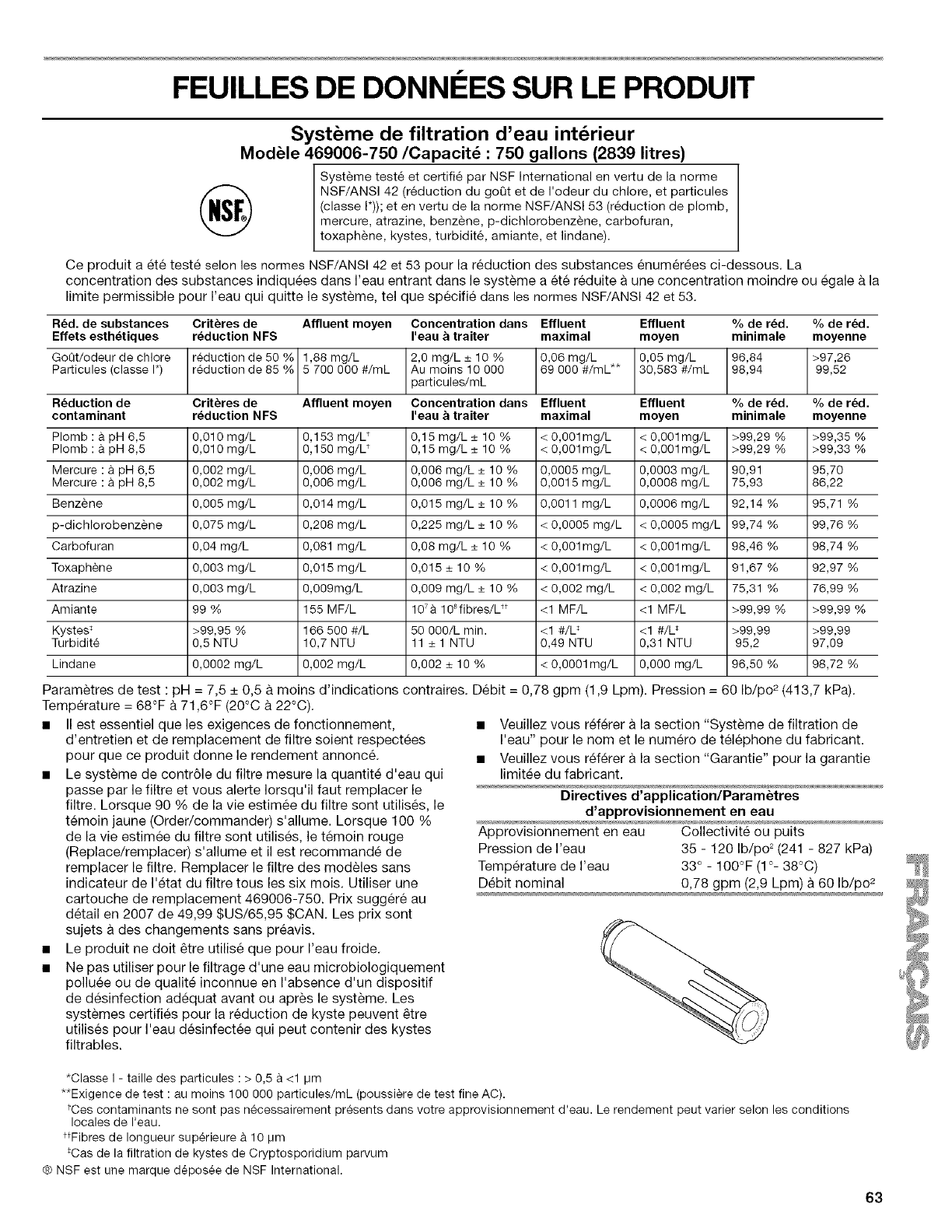 tCes contaminants ne sont pas n_cessairement presents dans votre approvisionnement d'eau. Le rendement peut varier selon les conditions