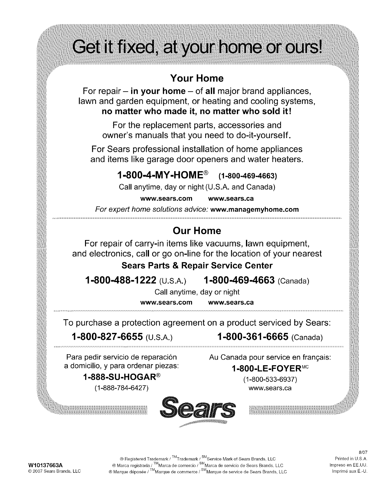 WIOI37663A Sears Canada Inc., Toronto, Ontario, Canada M5B 2B8 www.sears.ca